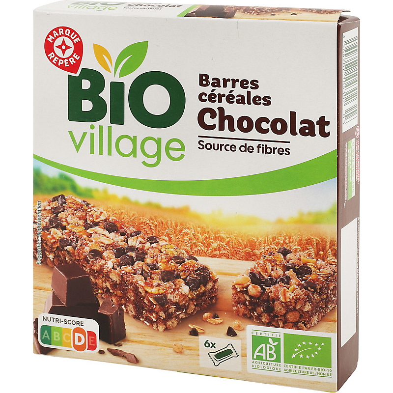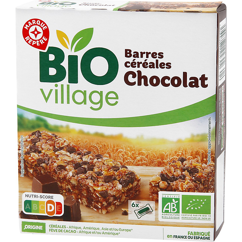 Barres de céréales aux pépites de chocolat - Produit issu de l'agriculture biologique. BIO VILLAGE