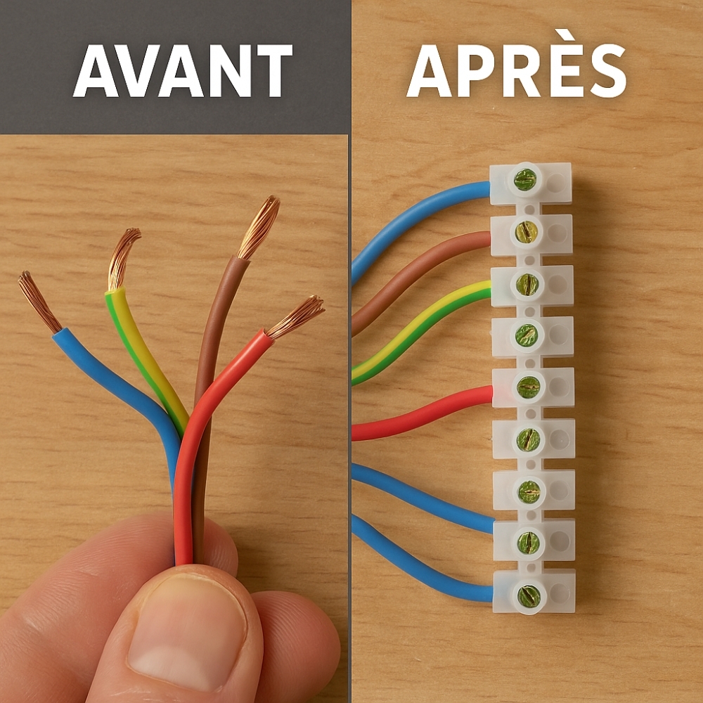 Optez pour une connexion électrique simple, sûre et durable grâce à la barrette de 12 dominos 6 mm, l’alliée idéale de vos installations domestiques. La barrette de 12 dominos électriques 6 mm est un accessoire essentiel pour tous vos travaux de raccordement domestique. Conçue pour supporter une tension maximale de 380V et un courant de 6A, elle assure des connexions fiables et sécurisées entre vos fils électriques. Chaque domino est fabriqué en matériaux isolants robustes, garantissant une protection optimale contre les risques de court-circuit et une excellente résistance à la chaleur. Sa barrette de 12 unités prédécoupables vous permet d’adapter facilement la longueur selon vos besoins, offrant ainsi une grande flexibilité d’utilisation. La section de 6 mm convient parfaitement aux câbles de taille standard, utilisée aussi bien pour l’éclairage que pour les petites installations domestiques. Grâce à son design compact et pratique, l’installation est rapide, même dans les espaces réduits. Ce produit s’adresse aussi bien aux bricoleurs particuliers qu’aux professionnels de l’électricité recherchant une solution simple et durable. Idéal pour sécuriser vos raccordements lors d’une rénovation, d’un montage de luminaire ou d’un ajout de prise, il représente un choix sûr et efficace. Avec cette barrette, vous bénéficiez d’un excellent rapport qualité-prix, allié à la durabilité nécessaire pour vos installations du quotidien. Connexion sécurisée et fiable : Chaque domino de la barrette assure une liaison électrique solide grâce à des vis de serrage robustes, garantissant le maintien des conducteurs et évitant les faux contacts, sources d’échauffement et de risques électriques. Compatibilité universelle : Conçu pour accueillir des conducteurs jusqu’à 6 mm², ce bornier convient aux câbles rigides (monobrin) comme souples (multibrins), avec ou sans embouts, facilitant les raccordements dans la majorité des installations domestiques. Performances adaptées aux installations domestiques : Supportant une tension jusqu’à 380V et un courant de 6A, la barrette répond aux besoins des circuits de faible puissance (éclairage, appareillages électriques, petits équipements électroménagers). Conception pratique et modulable : La barrette comprend 12 bornes alignées mais peut être facilement découpée au cutter ou à la pince pour n’utiliser que le nombre nécessaire de dominos, optimisant ainsi le câblage et évitant le gaspillage. Sécurité et conformité : Fabriquée en matériau isolant résistant à la chaleur et aux contraintes électriques, elle protège efficacement contre les courts-circuits, les arcs électriques et le contact direct, conformément aux normes d’installation basse tension. CARACTÉRISTIQUES: La barette de 12 dominos électriques 6 mm est idéale pour vos raccordements domestiques jusqu’à 380V / 6A. Robuste et sécurisée grâce à ses matériaux isolants, elle offre une installation simple, adaptable en fonction de vos besoins, et convient aussi bien aux particuliers qu’aux professionnels. Un accessoire fiable, pratique et durable pour toutes vos connexions électriques. -Type de produit : Barrette de dominos électriques (bornier à vis) -Nombre de bornes : 12 connecteurs alignés (sécables) -Section des fils acceptée : jusqu’à 6 mm² -Tension nominale : 380 V max -Intensité nominale : 6 A max -Mode de fixation des fils : serrage par vis en laiton/acier -Matière isolante : plastique isolant -Couleur : Transparent -Découpe : barrette sécable selon le nombre de connexions souhaitées