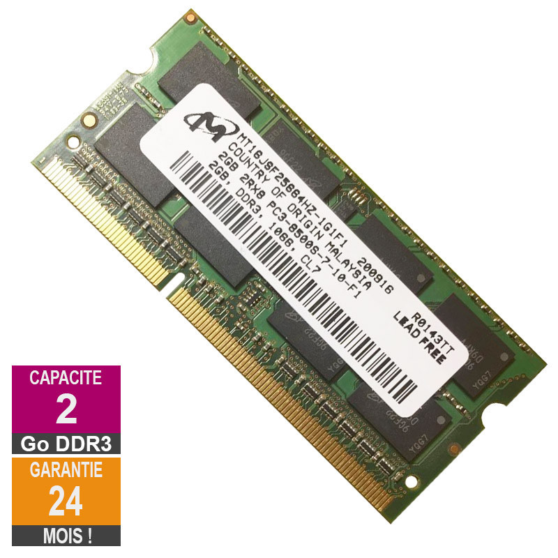 Libellé Barrette Mémoire 2Go RAM DDR3 Micron MT16JSF25664HZ-1G1F1 SO-DIMM PC3-8500 1066MHz 2Rx8