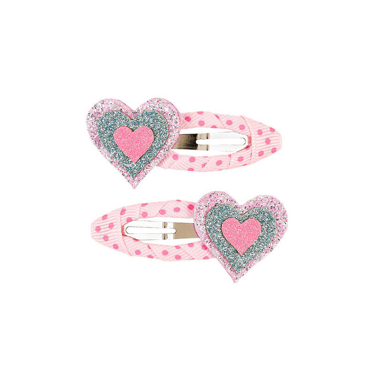 Plus produit Ces jolies barrettes en forme de cœur sont idéales pour ajouter une touche étincelante à votre coiffure ! Habillées de tissu rose à pois et ornées de cœurs scintillants en paillettes, elles allient douceur et éclat. Parfaites pour les petites occasions festives ou pour illuminer le quotidien, ces barrettes faciles à attacher maintiennent les mèches en place avec style. Une dose de glamour adorable à porter dans les cheveux !