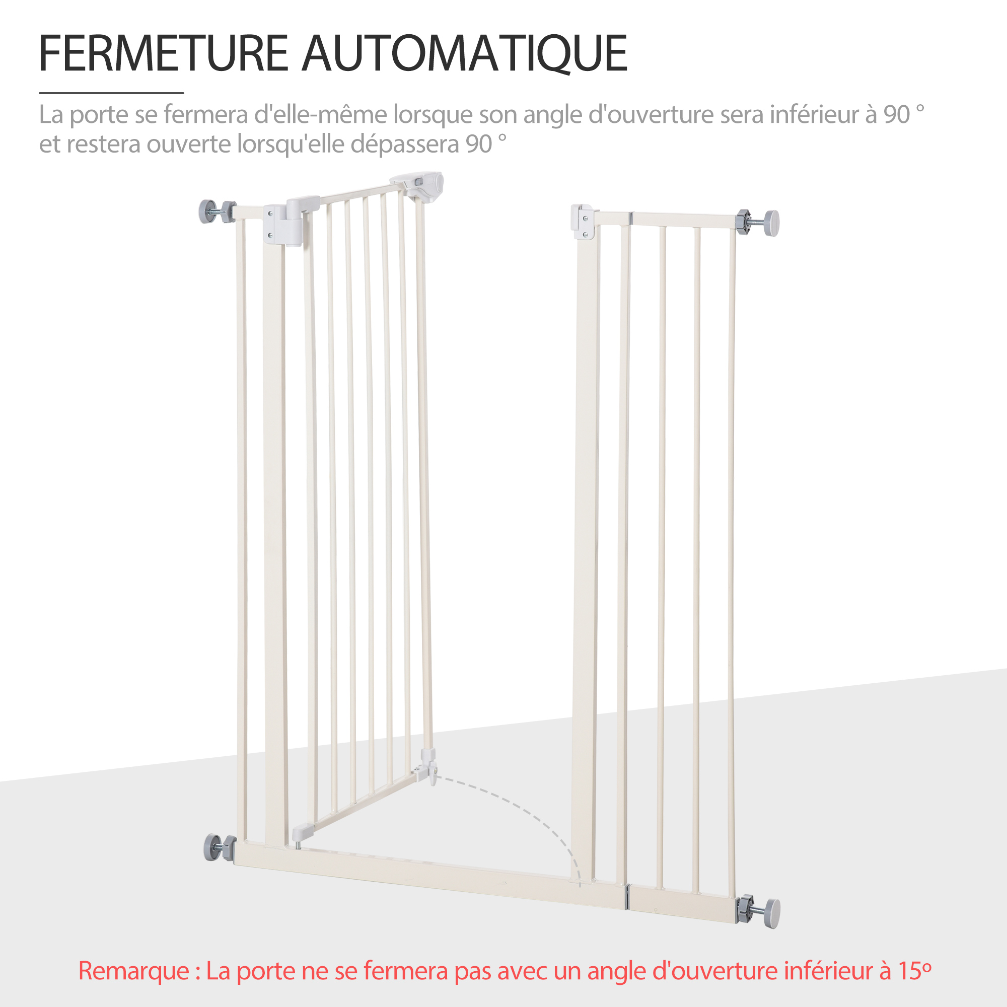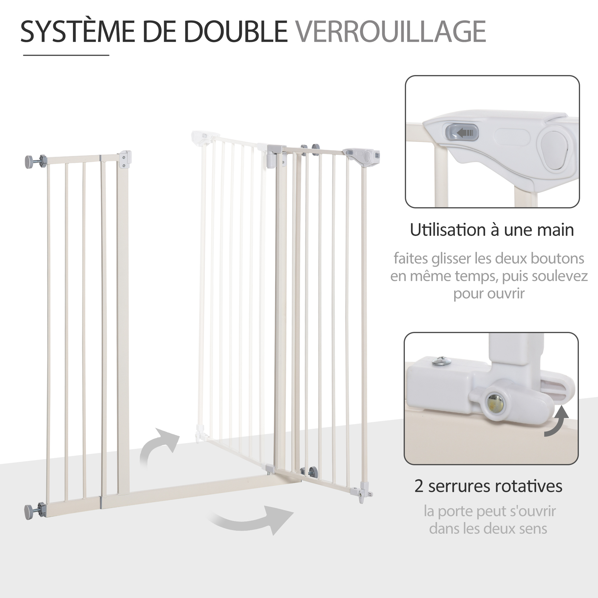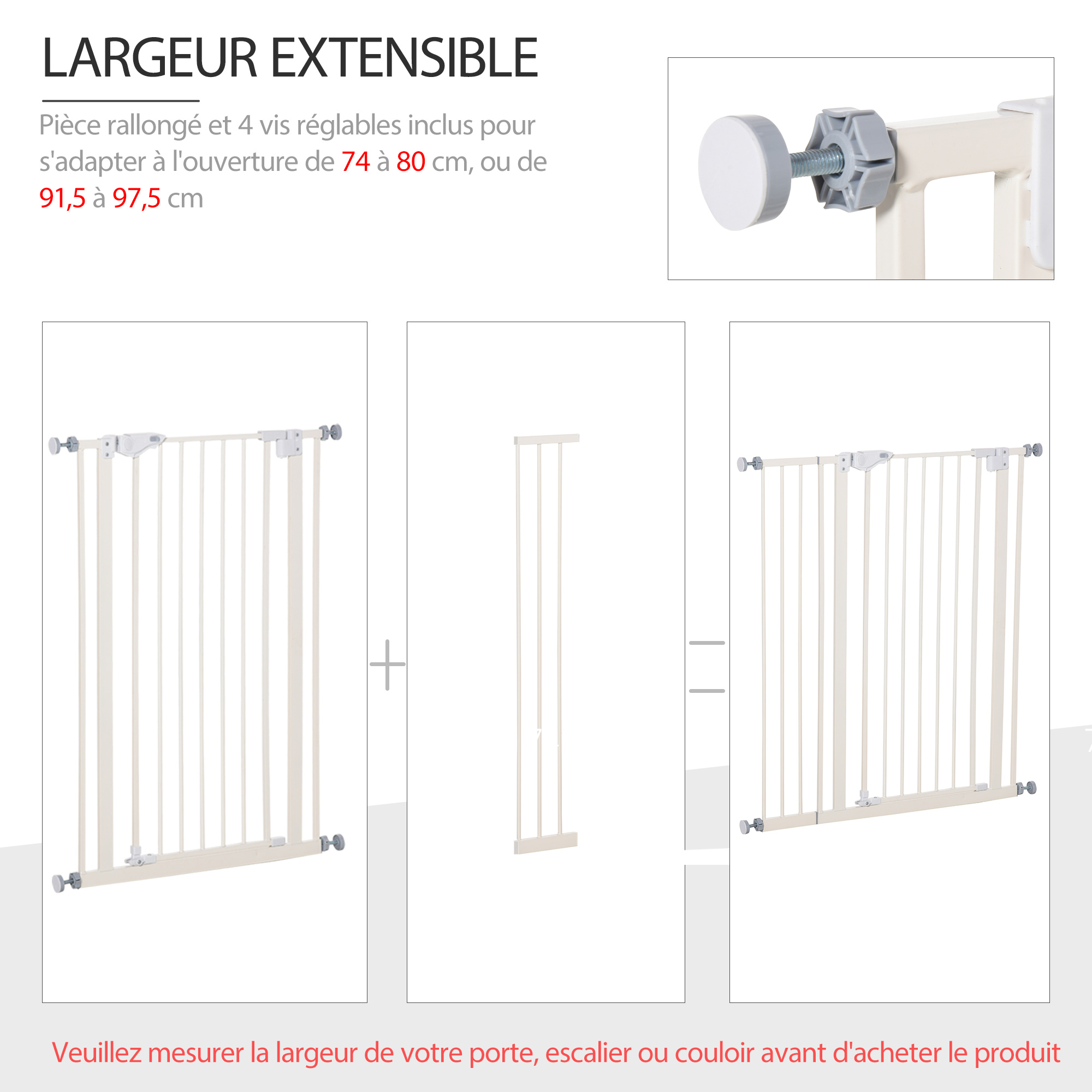 Barrière de sécurité longueur réglable dim. 74-84 cm ou 92-102 cm sans perçage métal plastique blanc