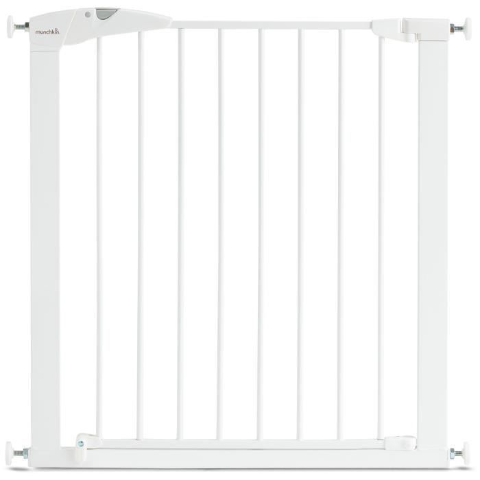 La barrière de sécurité Maxi-Secure de MUNCHKIN est idéale pour protéger votre bébé. Elle est facile à installer grâce à sa fixation par pression et peut s'ouvrir d'une seule main. Elle est compatible avec des ouvertures de 76 à 82 cm et peut s'étendre jusqu'à 117 cm avec des extensions vendues séparément.
