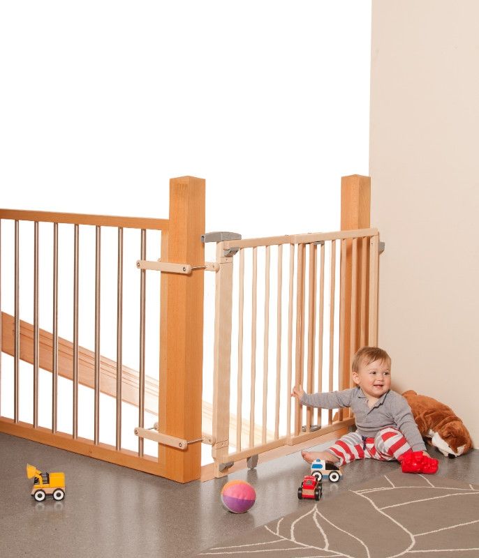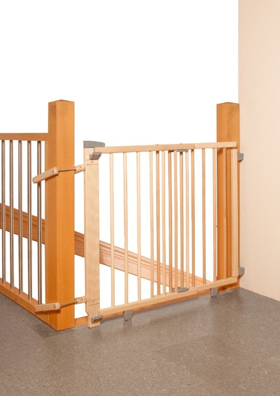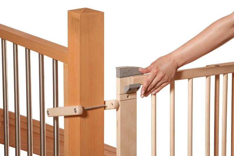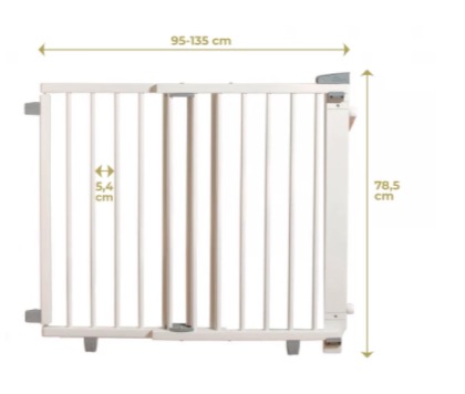 Barrière de sécurité+ pour escaliers Escalier-Hêtre massif certifié FSC-Coloris naturel-Dimensions : Largeur/Zone de réglage 95-135 cm-Hauteur 83 cm-A poser dans un encadrement d'escalier avec rambarde d'un seul coté (si rambardes des 2 côtés, ajouter 1 kit escalier ref 2725ZK+ )