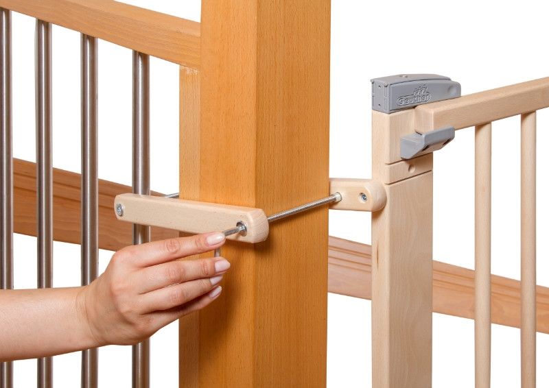 Barrière de sécurité plus escalier 95-135 cm en bois naturel