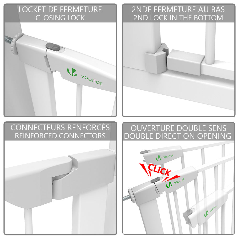 - Colis inclus : 1 barrière de sécurité, 1 extention de 12cm, 4 points de serrage, 1 notice