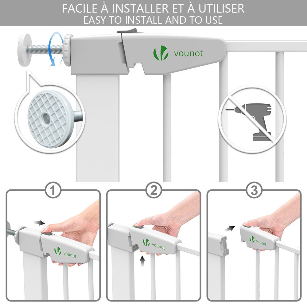 FACILE À INSTALLER - Cette barrière de sécurité s'installe facilement avec une fixation par pression sans aucun perçage et se retire rapidement avec un simple système de déclenchement.