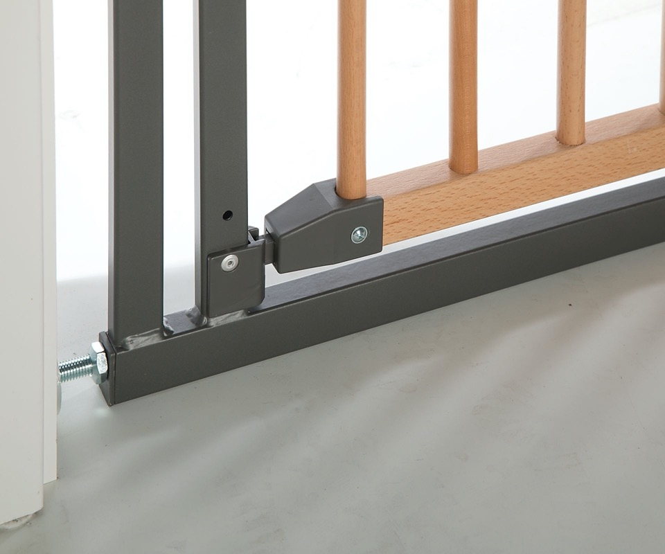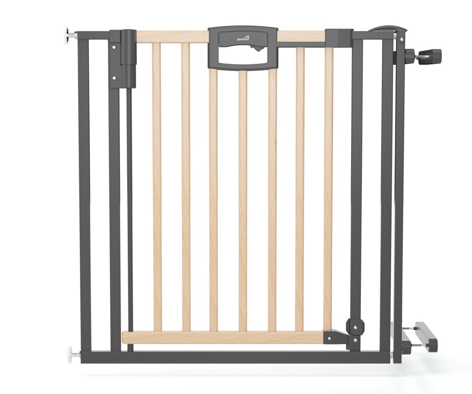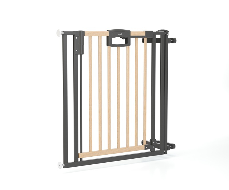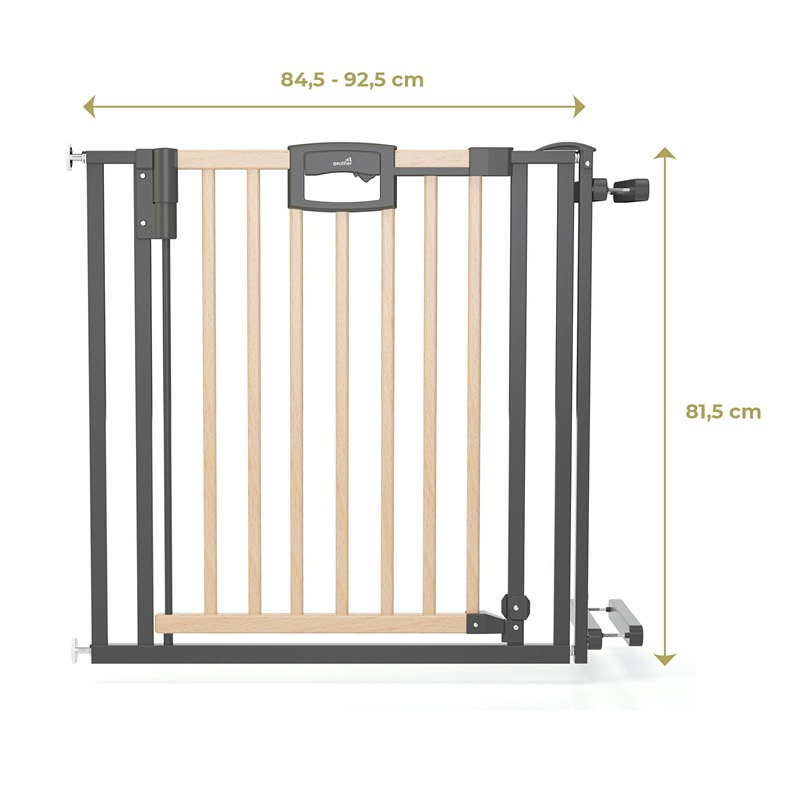 La barrière de sécurité bébé pour escalier est en bois et se fixe sans faire de trou, par un système de pression sécurisée. La barrière de sécurité bébé sans percer protège l'escalier sur une zone de 84.5 à 92.5 cm. La barrière de sécurité Easylock Natur, en bois de hêtre massif. Ouverture et fermeture facile pour les adulte par un système de pression au niveau d'un portail central. Fonctionne dans les 2 sens d'ouverture. zone de réglage de84.5 à 92.5 cm pour une hauteur 81.5 cm.