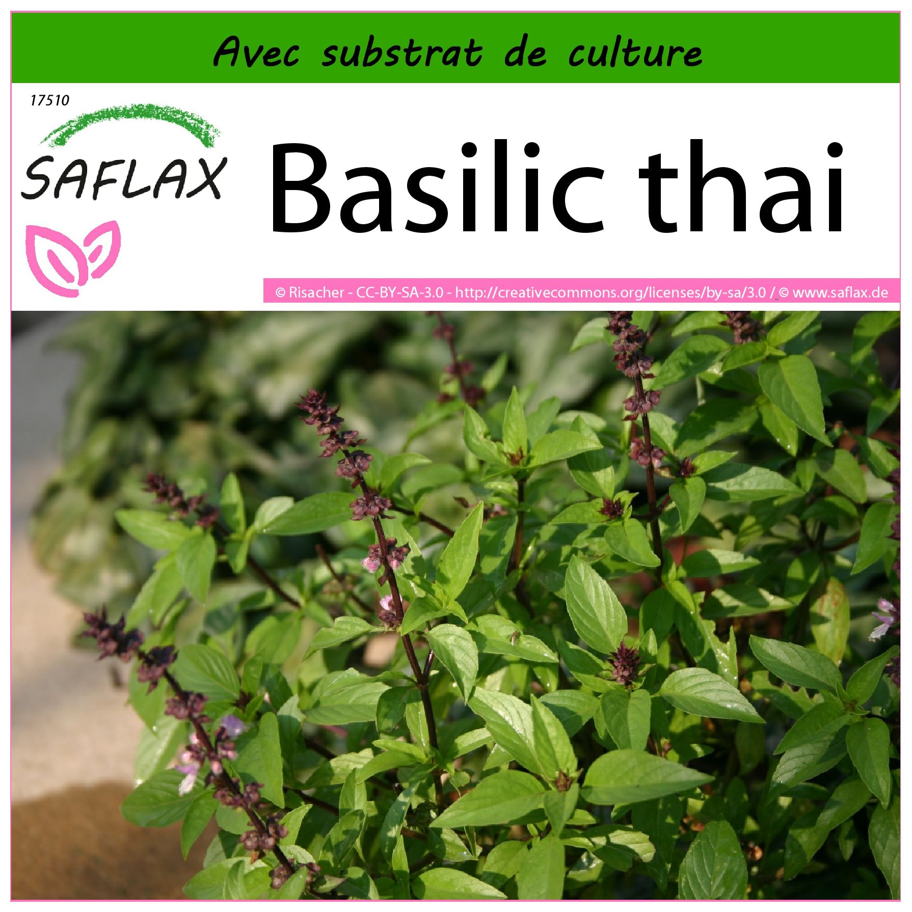 SAFLAX - Basilic thai - 200 graines - Avec substrat de culture aseptique - Ocimum basilicum