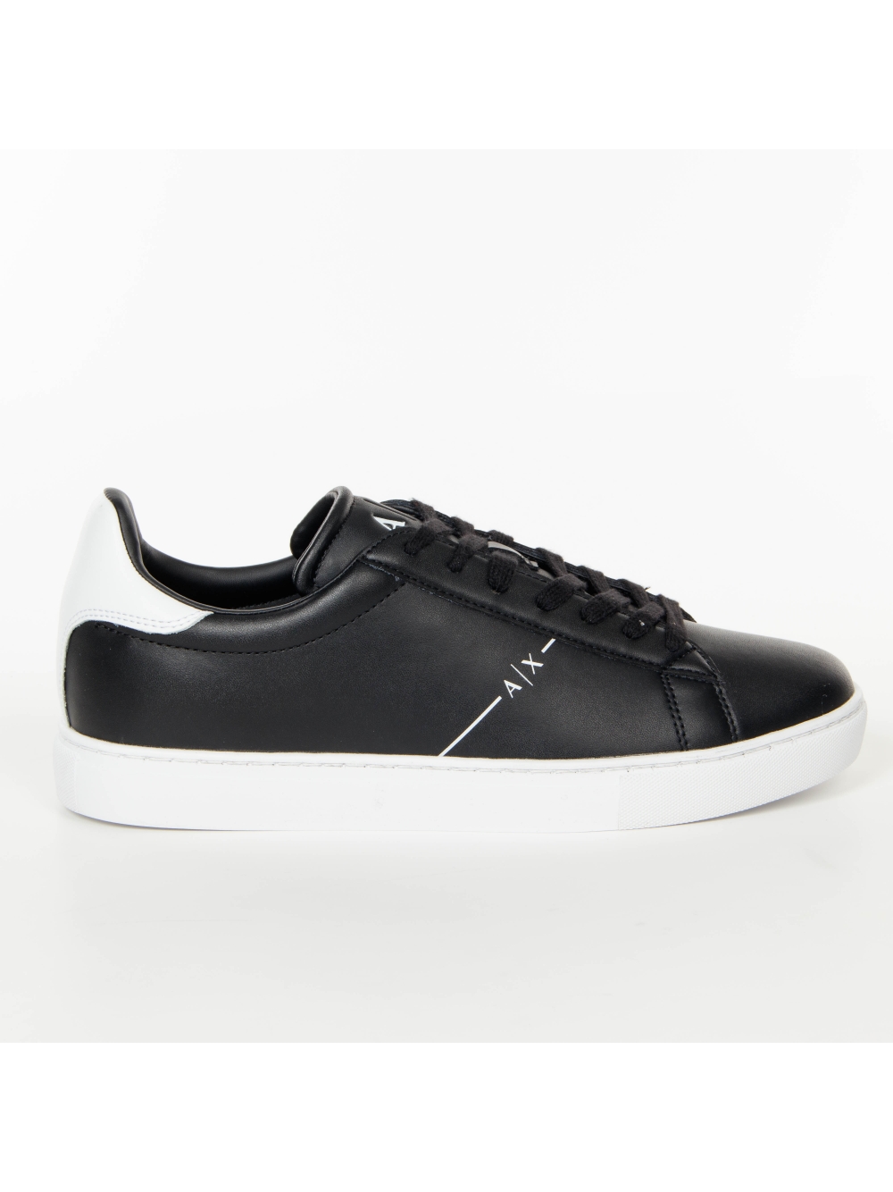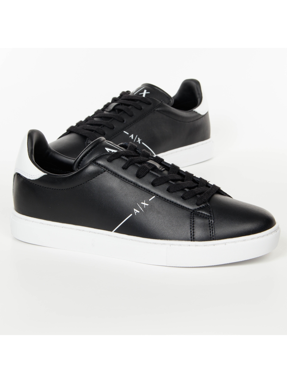 Basket Armani Exchange Classic sneaker Homme Noir cuir. Authentique Chaussure de la marque Armani Exchange - design streetwear/sportswear de Armani Exchange - Armani Exchange pour Homme fashion, parfait pour la vie de tous les jours - Basket Armani Exchange de couleur Noir s'associe parfaitement avec le reste de votre dressing - matiere cuir confortable - Lacets classic - Classic sneaker - Synthétique
