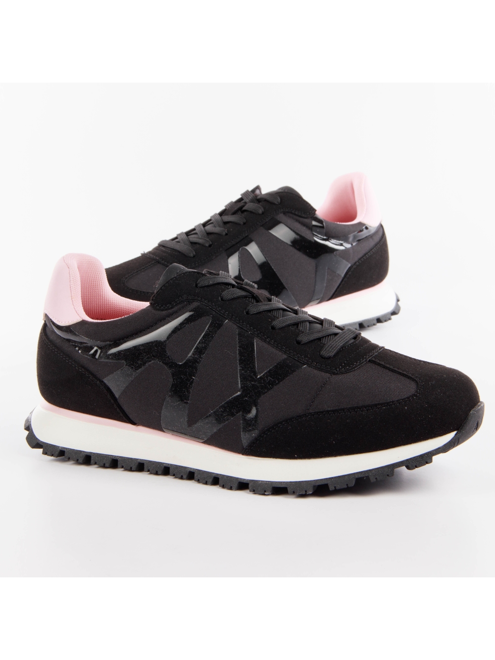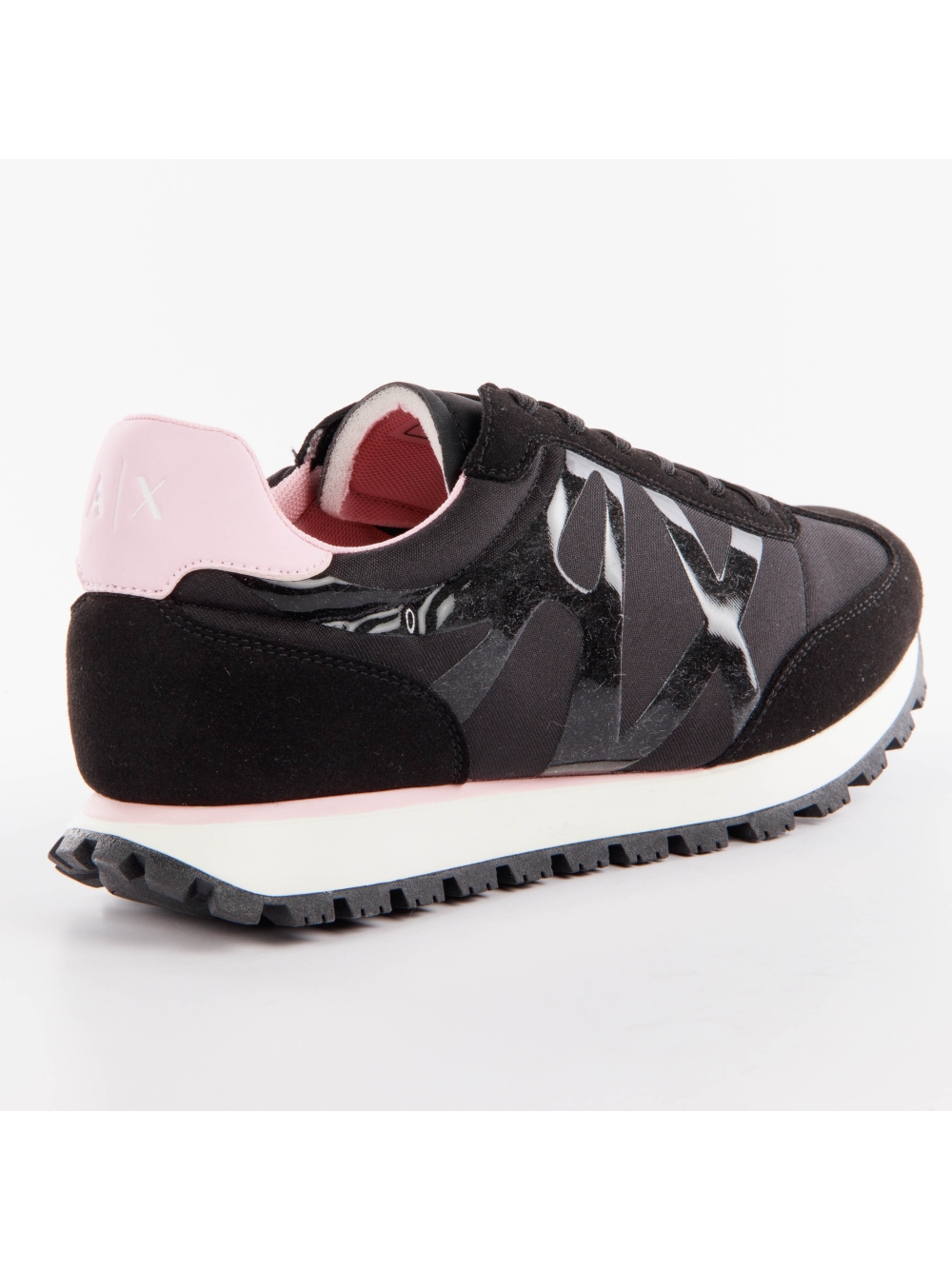 Basket Armani Exchange Shine Femme Noir Synthétique. Authentique Chaussure de la marque Armani Exchange - design streetwear/sportswear de Armani Exchange - Armani Exchange pour Femme fashion, parfait pour la vie de tous les jours - Basket Armani Exchange de couleur Noir s'associe parfaitement avec le reste de votre dressing - matiere Synthétique confortable - Lacets classic - Shine - Synthétique