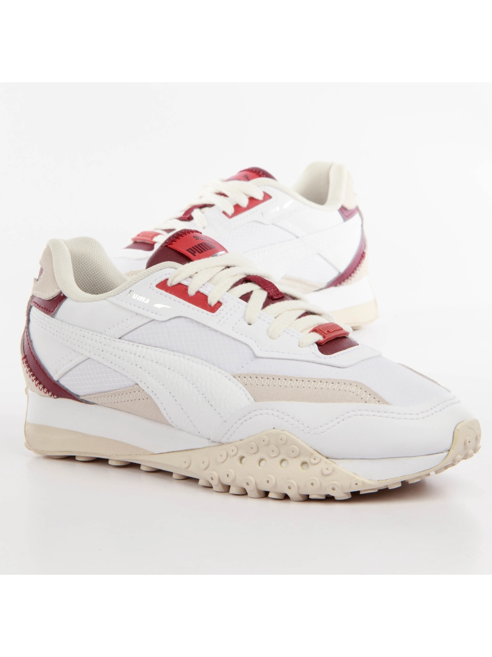 Basket Puma Blktop Rider Soft Femme Blanc cuir. Authentique Chaussure de la marque Puma - design streetwear/sportswear de Puma - Puma pour Femme fashion, parfait pour la vie de tous les jours - Basket Puma de couleur Blanc s'associe parfaitement avec le reste de votre dressing - matiere cuir confortable - Lacets classic - Blktop Rider Soft - Synthétique