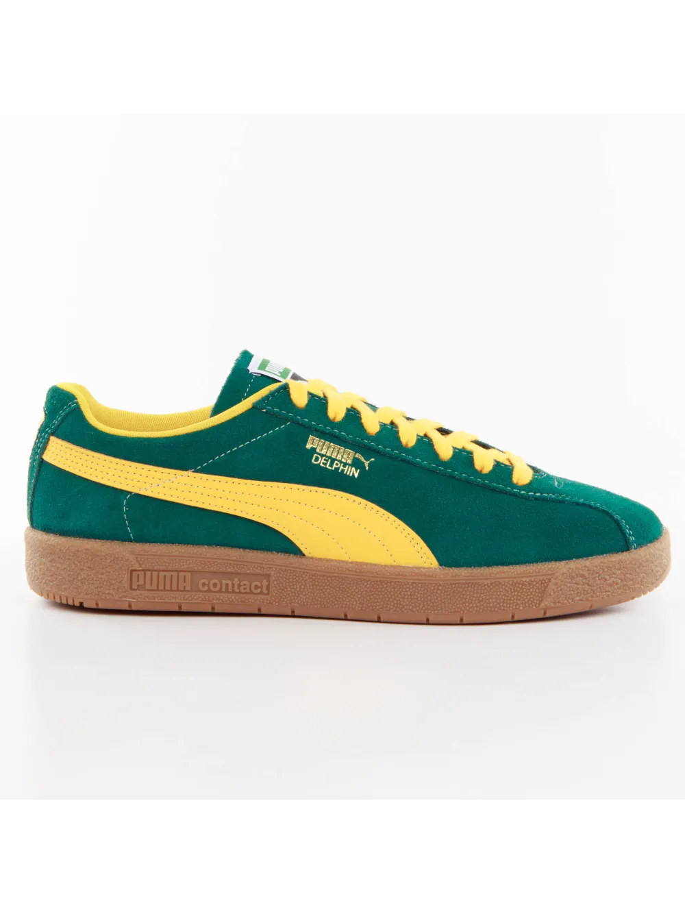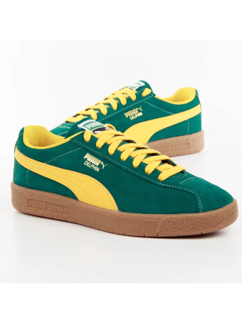 Basket Puma Delphin Homme Vert cuir. Authentique Chaussure de la marque Puma - design streetwear/sportswear de Puma - Puma pour Homme fashion, parfait pour la vie de tous les jours - Basket Puma de couleur Vert s'associe parfaitement avec le reste de votre dressing - matiere cuir confortable - Lacets classic - Delphin - Synthétique