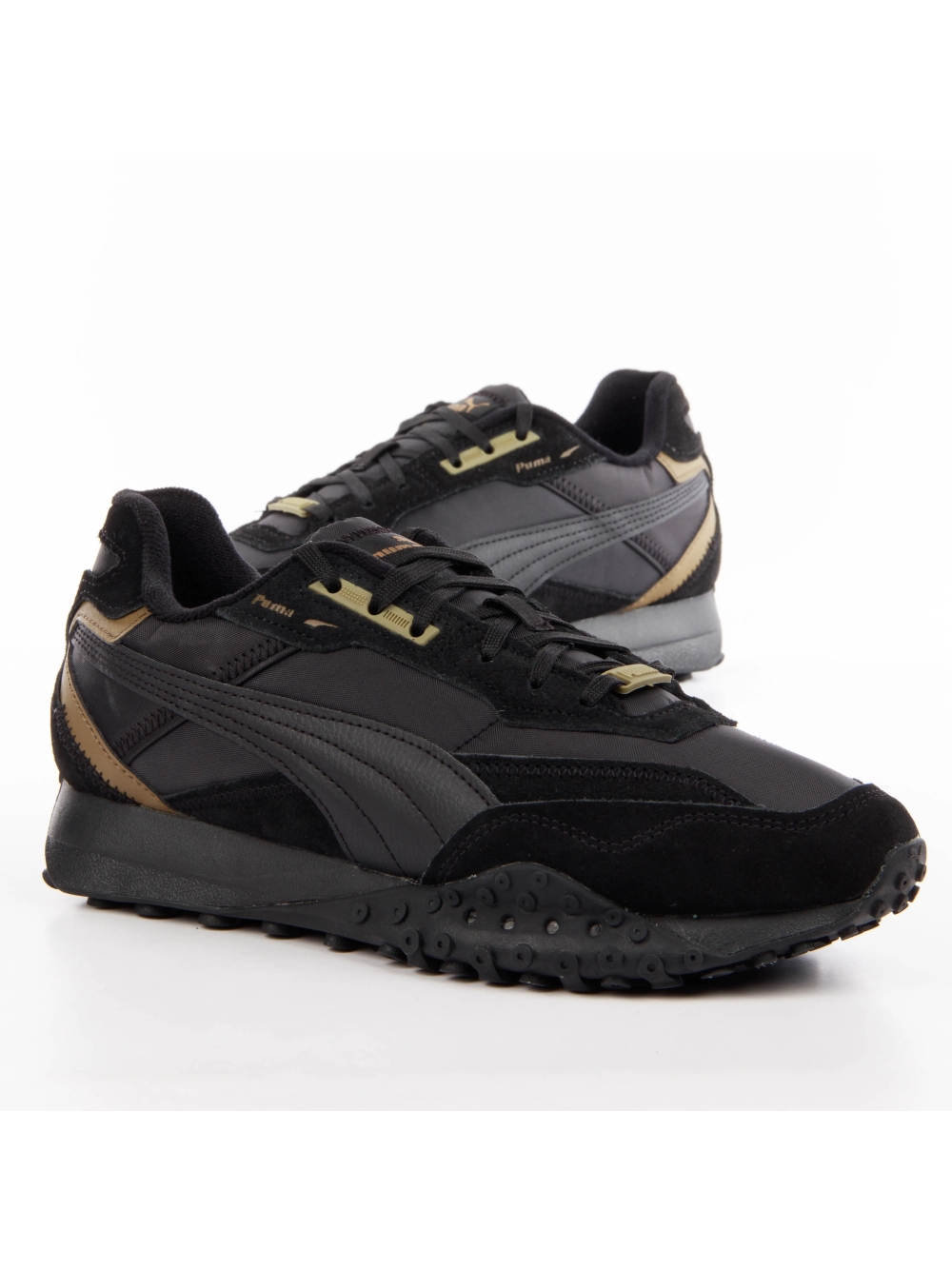 Basket Puma Rider Homme Noir Synthétique. Authentique Chaussure de la marque Puma - design streetwear/sportswear de Puma - Puma pour Homme fashion, parfait pour la vie de tous les jours - Basket Puma de couleur Noir s'associe parfaitement avec le reste de votre dressing - matiere Synthétique confortable - Lacets classic - Rider - Synthétique