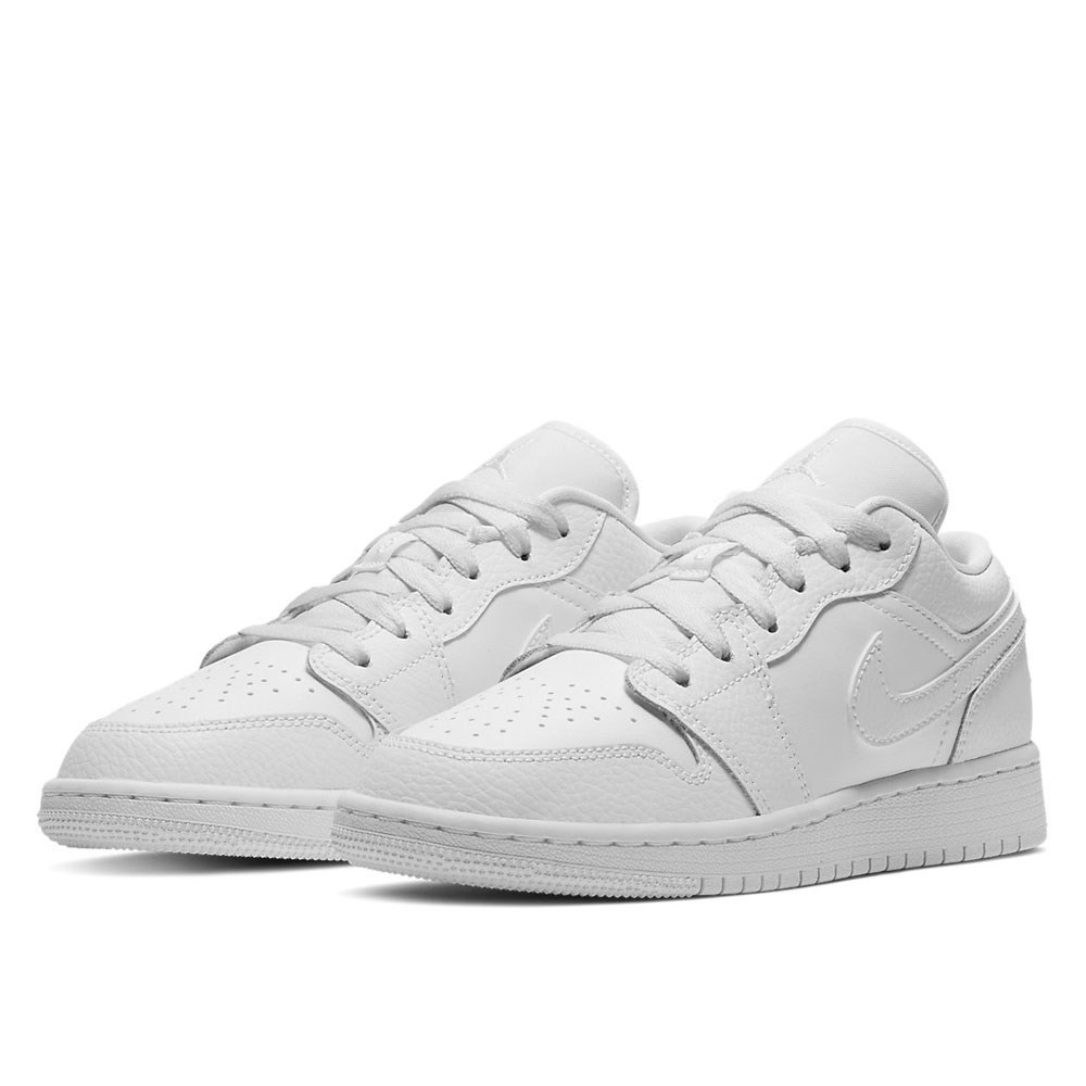 Baskets Air Jordan 1 Low pour jeunes entièrement recouvertes de blanc, soulignées du logo Nike et du célèbre logo Jordan Wings. Fabriqués à partir d'une combinaison de cuir naturel et synthétique, ils garantissent durabilité et sont faciles à nettoyer. L'ensemble de la conception repose sur une semelle dotée d'un système Air intégré. Les chaussures blanches Air Jordan 1 Low sont le complément parfait au style printanier. Caractéristiques du produit : Tige en cuir Amorti Nike Air Semelle souple Couleur: Blanc Code produit: 553560-130