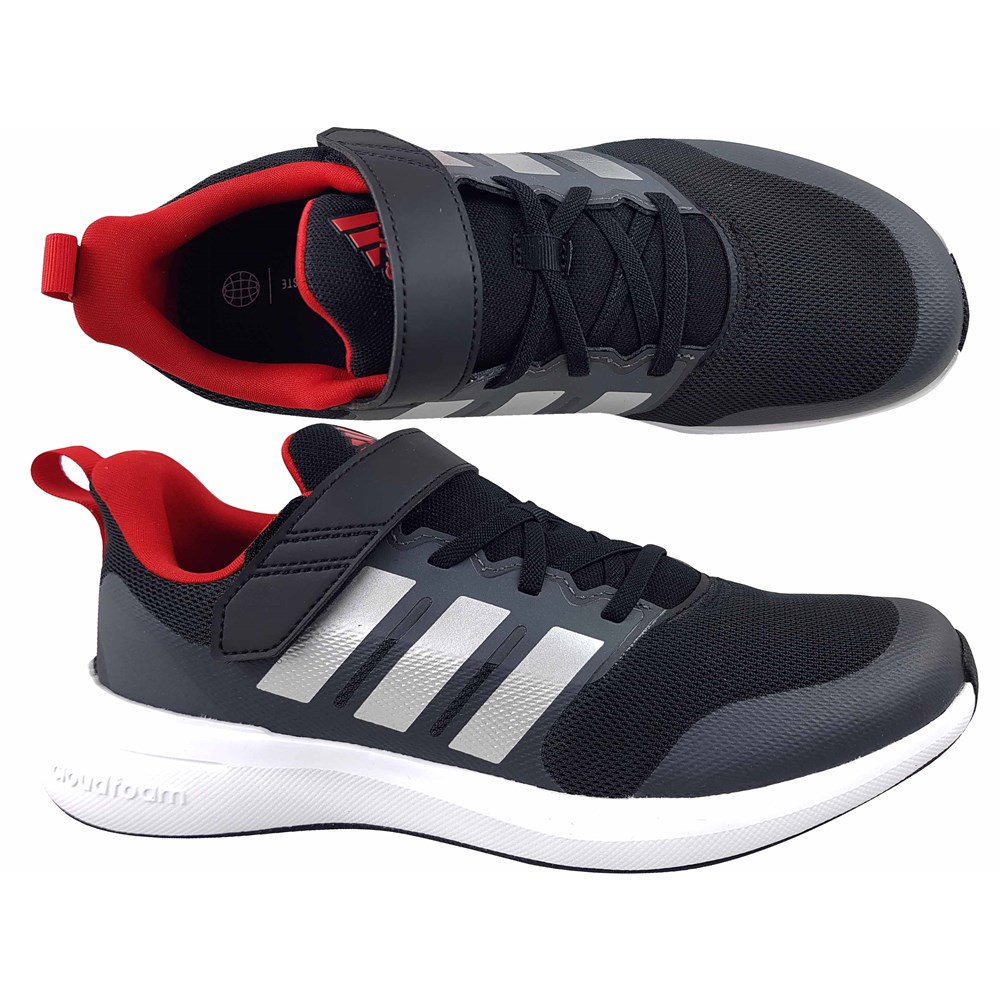 Adidas FortaRun au style moderne et dynamique, une combinaison d'une version sportive de chaussures de course, conçues pour un usage quotidien. Fermeture velcro et lacets élastiques pour un meilleur ajustement et maintien du pied dans la chaussure