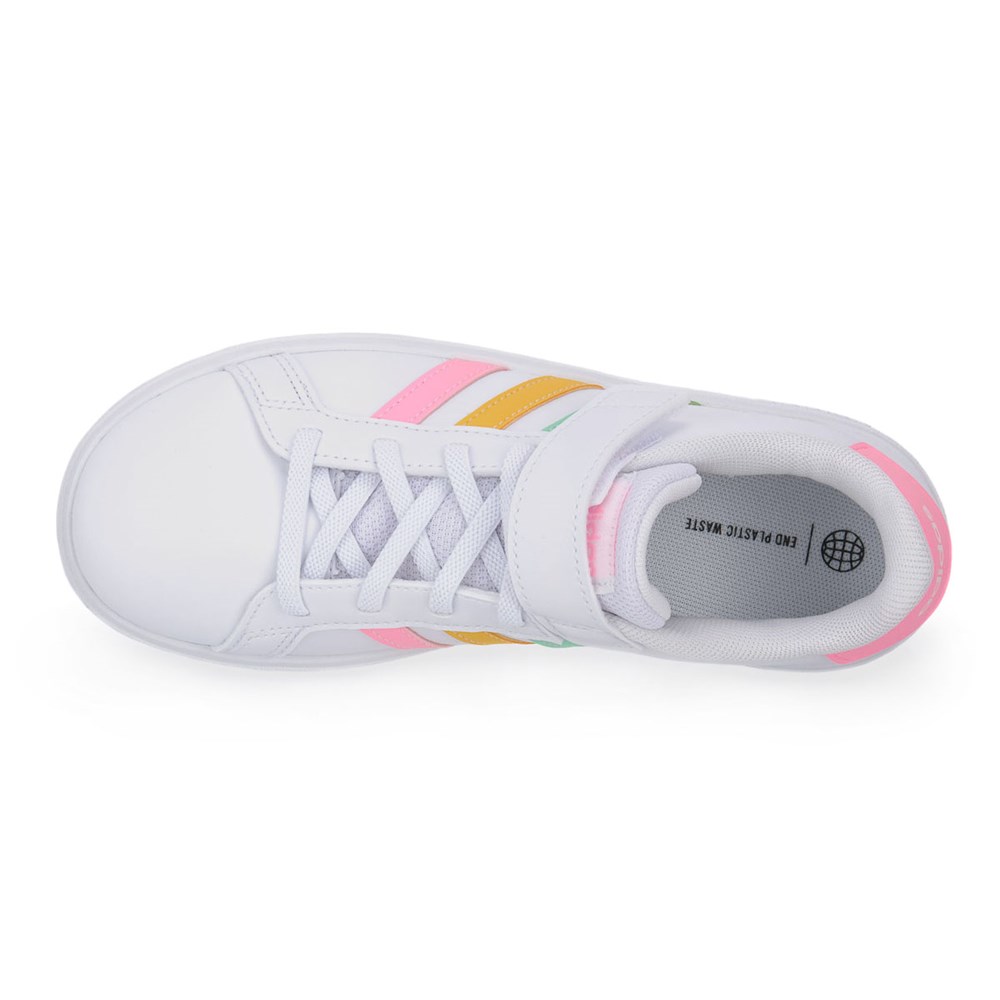 Nous recommandons les chaussures pour enfants Adidas Grand Court 2 EL K HP8913 à tous ceux qui cherchent la solution idéale liant de l’élégance et du bien-être. Ces baskets basses non communes pour enfants seront parfaites à l’usage universel – aux habits quotidiens et aussi aux vêtements pour les occasions spéciales (p.ex. elles se présentent très bien avec une chemise élégante). En dehors de valeurs esthétiques irréfutables, la société Adidas a pris soin de la sécurité et du confort. Les technologies innovatrices ainsi que la tige faite des matériaux de haute qualité (synthétique) le garantissent. Ce sont les chaussures idéales pour toute saison.