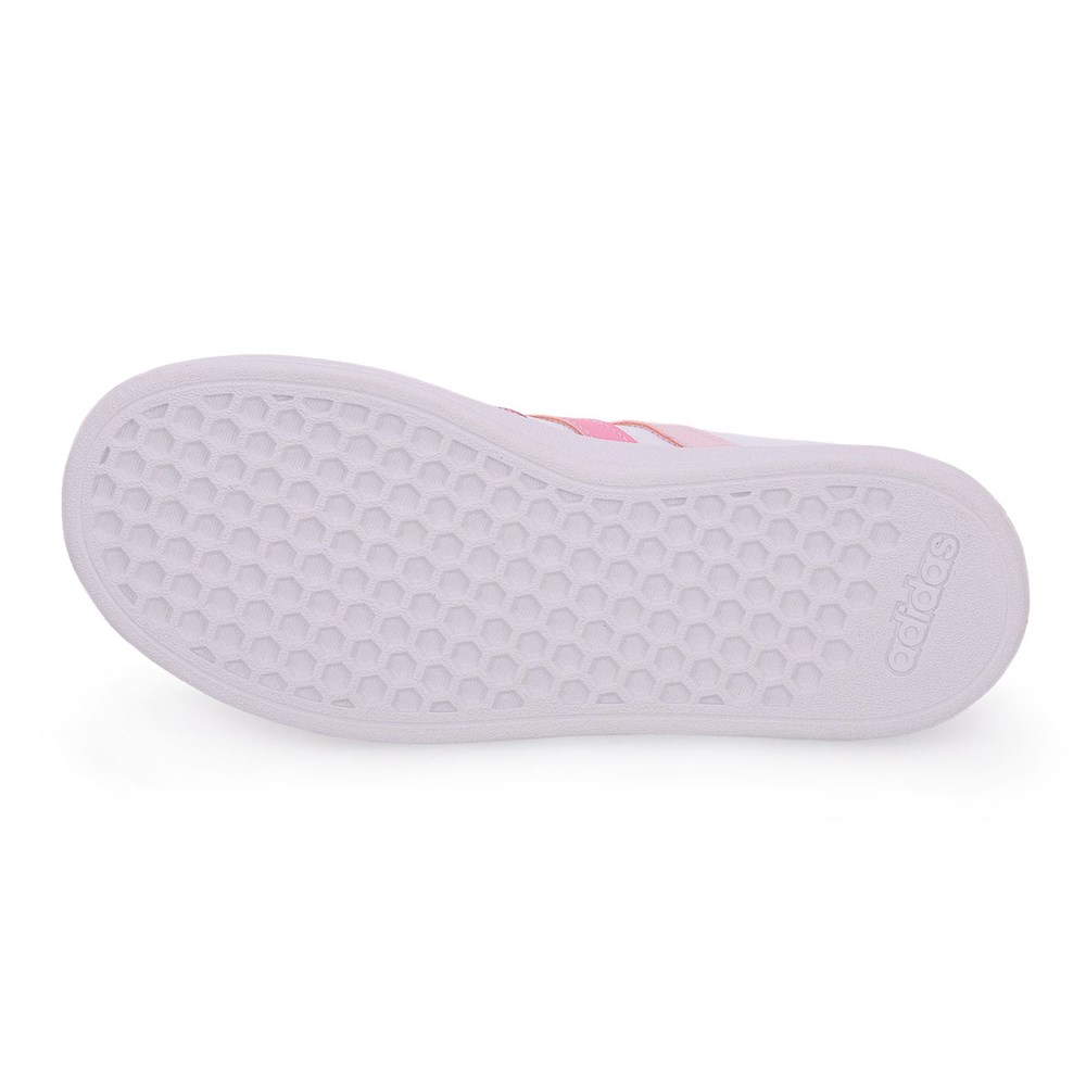 Chaussures Adidas Grand Court pour enfants - elles ont une semelle en caoutchouc solide mais flexible qui soutient chaque pas et chaque saut. Fabriqué avec des lacets élastiques qui s'étirent au fur et à mesure que les enfants les enfilent et une sangle supérieure en Velcro. Fabriquée à partir d'une gamme de matériaux recyclés, cette tige contient au moins 50 % de matériaux recyclés. Ce produit n'est qu'une de nos solutions qui aident à éliminer les déchets plastiques.