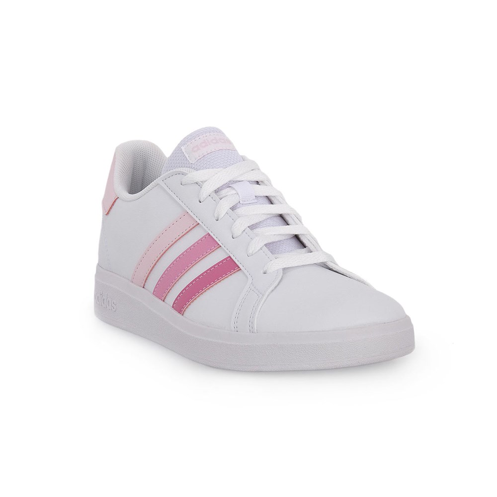 Chaussures à lacets pour enfants Adidas Grand Court Lifestyle Tennis, blanches et roses IG0440