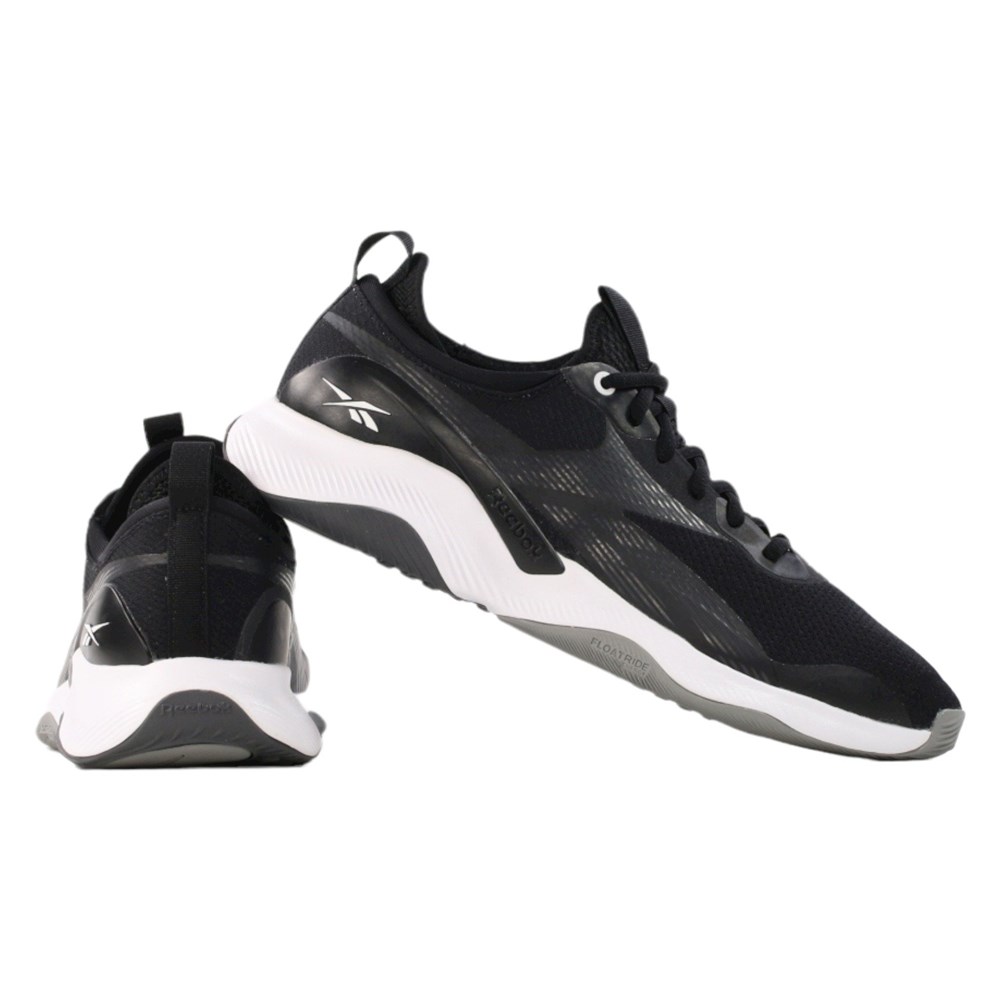 Reebok HIIT TR 2.0 G55545 Chaussures de sport homme noires. Les Reebok HIIT TR 2.0 G55545 sont des chaussures homme élégantes et polyvalentes, conçues pour une utilisation tout au long de l'année. Reebok, réputée pour son souci de la qualité et du détail, a conçu ce modèle pour allier style et fonctionnalité. Ces chaussures s'accordent aussi bien avec des tenues décontractées du quotidien, comme un jean et un t-shirt, qu'avec des tenues plus élégantes. La tige est fabriquée en matière synthétique de haute qualité, assurant une bonne aération, ce qui protège les pieds de la surchauffe et garantit un confort optimal. De plus, des technologies modernes favorisent la stabilisation du pied et minimisent les risques de blessure, faisant de ce modèle un choix pratique et fiable au quotidien.
