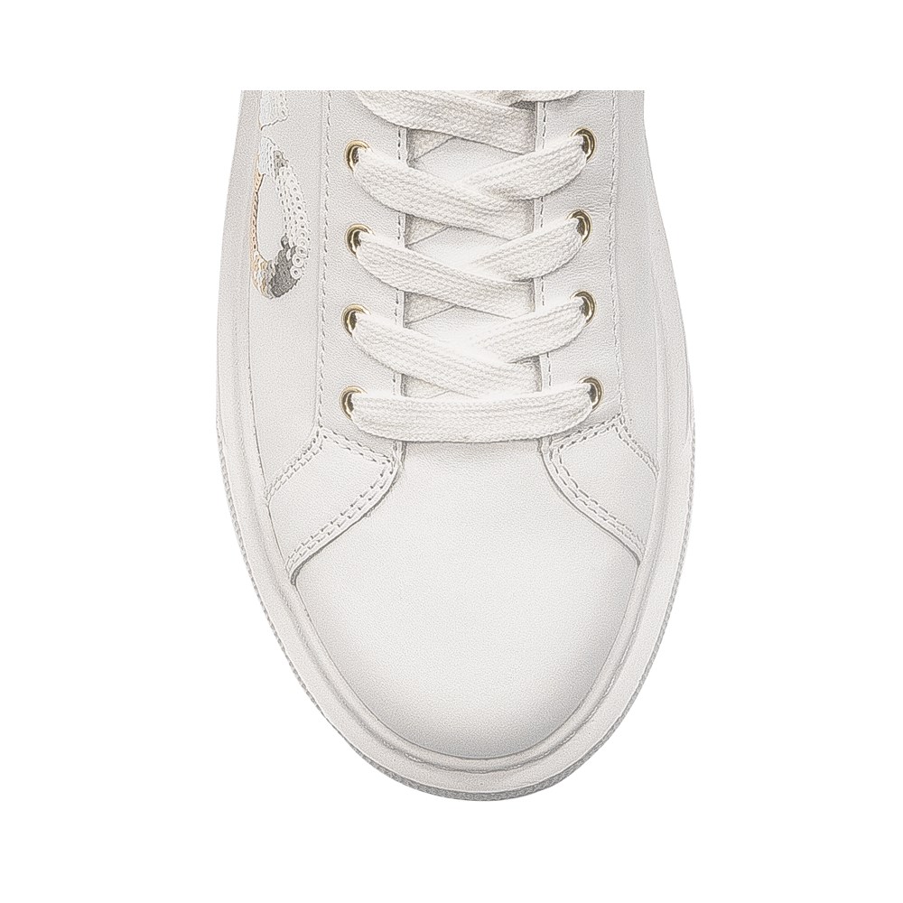 Le modèle présenté de la marque Liu Jo est de belles baskets pour femmes. La tige est en cuir naturel de couleur blanc avec le logo de la marque composé de paillettes brillantes. L'insert et la doublure sont en tissu doux. Modèle équipé de lacets. La semelle est une plateforme en matériau de haute qualité, elle a une hauteur maximale de 3,5 cm au talon et de 3 cm à l'avant. Le bout de la chaussure a une forme ronde, ce qui se traduit par un grand confort pour les orteils. Le confort et le look sont garantis dès que vous mettez ces chaussures à vos pieds.