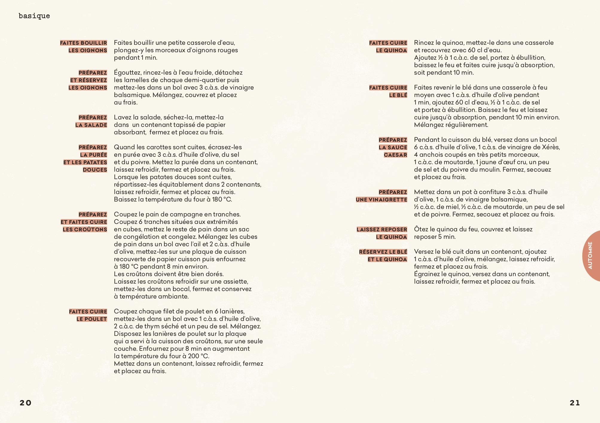 Découvrez une méthode pour cuisiner seulement 2 h dans le week-end et préparer des bases que vous n'aurez plus qu'à assembler chaque soir de la semaine. Ce livre vous propose ainsi 80 recettes déclinées en 16 menus classés par saison et par envie : menus basiques, veggies, du placard ou comfort food.