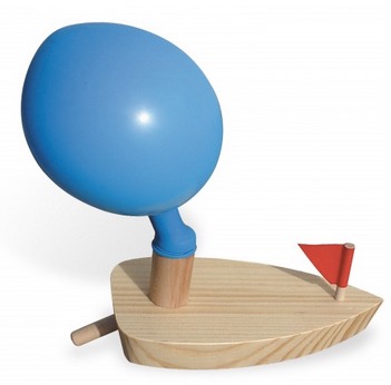 En se dégonflant, le ballon propulse le bateau en bois.