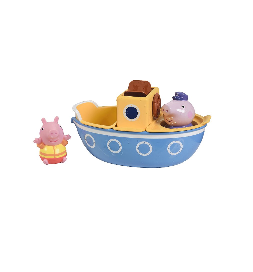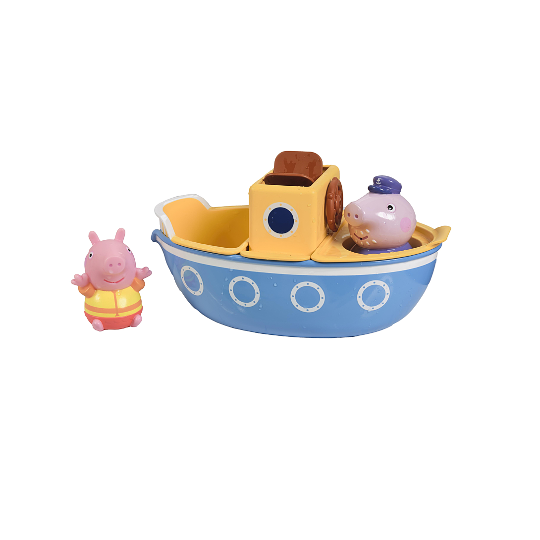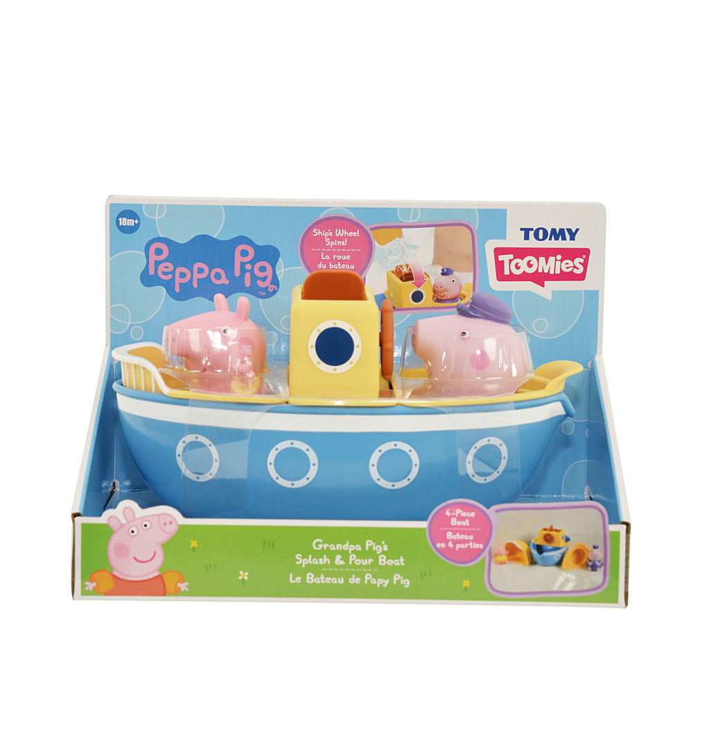 Prend le large avec Papy Pig et Peppa ! Fais naviguer le bateau dans le bain et amuse-toi avec les différents verseurs et la roue à eau qui tourne. Bateau en 4 parties avec différents jeux d’eau. Gicleurs Peppa & Papy Pig inclus. Dès 18 mois