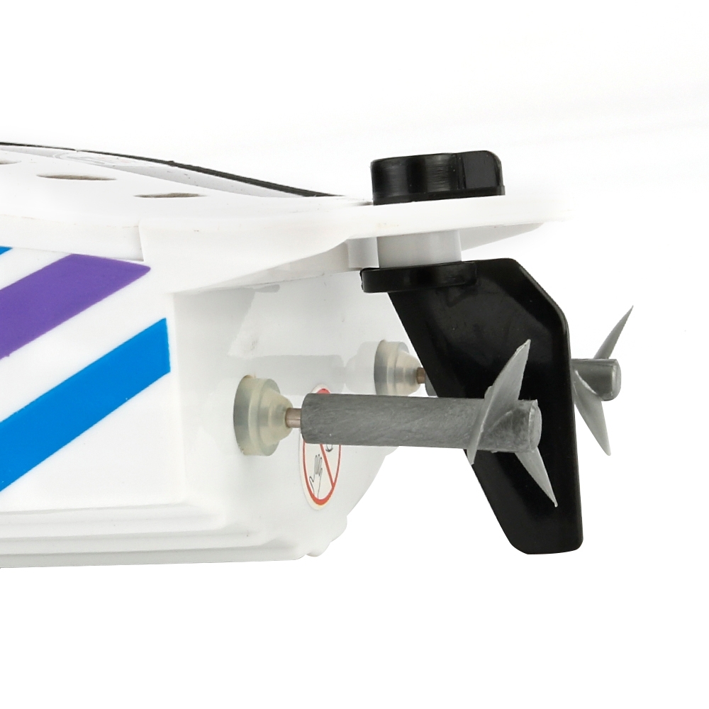 Faites plonger votre enfant de 10 ans ou plus dans une joie immense en lui offrant ce bateau radiocommandé comme cadeau d'anniversaire ou de noël. Très confortable à piloter, ce jouet peut aussi très bien vous distraire vous-même si vous décidez par exemple de défier un de vos camarades dans une partie de course. Avec à l'arrière une double hélice de queue, ce bateau télécommandé peut être propulsé à une très grande vitesse. Son support de quatre canaux lui permet d'être orienté très facilement vers la gauche, la droite, l'arrière ou vers l'avant. Il faut préciser qu'il est réalisé en plastique et que sa taille s'élève à 31 x 9,5 x 9,5 cm.