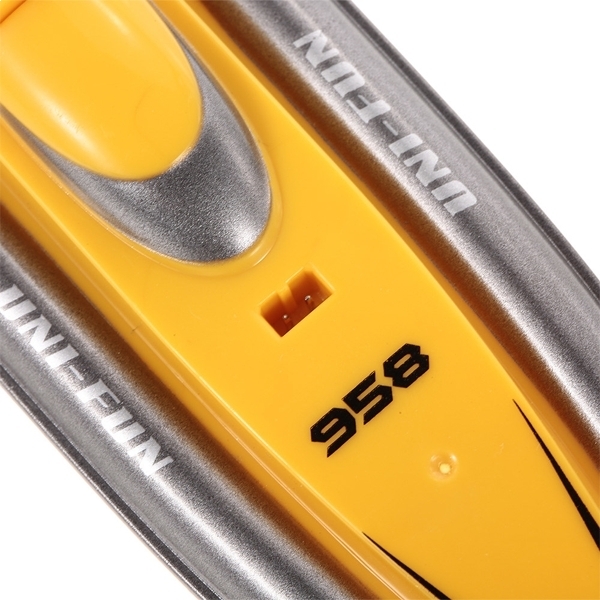 Ce bateau télécommandé est le cadeau parfait pour un enfant. Il est facile à contrôler avec une télécommande facile à manier. Il est équipé d'un double moteur pour assurer une bonne propulsion.* Dimensions bateau : 14 x 5 x 3,6 cm * Fréquence de contrôle : 2,4 G * Moteur : Double moteur brossé * Distance de contrôle : environ 3 à 6 m * Vitesse : 0,48 m/s * Fonction : avant/arrière/virage à gauche/virage à droite/collection * Batterie de bateau : batterie Lipo 2,4 V 60 mAh (intégrée) * Temps de charge : environ 10 minutes * Le bateau se charge en se branchant à sa télécommande * Temps de jeu : environ 6 à 8 minutes * Pile de la télécommande: 4 piles AA 1,5 V (non fournies) Fonctions : bateau télécommandée Contenu : 1 bateau, 1 télécommande