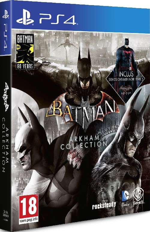 Contenu bonus : Le skin du Chevalier Noir : Terre 2 pour Batman Arkham Knight Plus-Produit : - Batman Return to Arkham (Batman Arkham Asylum GOTY + Batman Arkham City GOTY) - Batman Arkham Knight Premium Edition - les steelbook et fourreau exclusifs Avec Batman : Arkham Collection, retrouvez une édition inédite de la trilogie Batman : Arkham de Rocksteady, le studio qui a révolutionné le genre et marqué une génération de joueurs ! Batman : Arkham Asylum GOTY : Découvrez une aventure unique, sombre et angoissante qui vous entraînera dans les profondeurs de l'asile d'Arkham. A vous de vous tapir dans l'ombre et de glacer d'effroi vos adversaires pour affronter le Joker ainsi que les plus célèbres ennemis de Gotham City, retranchés dans l'asile. Tirez parti de tous les objets de Batman et de ses compétences exceptionnelles : devenez un prédateur invisible pour déjouer le plan diabolique du Joker !