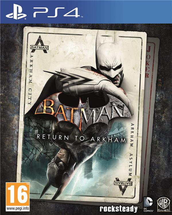 Batman : Return to Arkham est une compilation qui comprend les versions remasterisées des jeux Batman: Arkham Asylum et Batman: Arkham City avec tous les éléments supplémentaires présents dans les éditions Game of the Year et les packs de contenu téléchargeable. Batman: Arkham Asylum convie les joueurs à une aventure unique, sombre et oppressante qui les entraîne dans les profondeurs de l'asile d'Arkham, l'hôpital psychiatrique de Gotham pour les fous dangereux. Faufilez-vous parmi les ombres, semez la terreur chez vos ennemis et affrontez le Joker et les plus célèbres criminels de Gotham City qui ont pris le contrôle de l'asile. Batman: Arkham City développe cet univers en plongeant les joueurs au coeur d'Arkham City, quartier de haute sécurité destiné à accueillir les voyous, gangsters et autres esprits malades de la ville. Cette suite propose un scénario inédit et s'articule autour d'une nouvelle sélection de célèbres personnages et super-vilains.