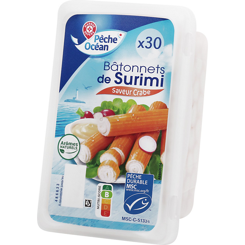 Bâtonnets de surimi de chair de poisson, saveur crabe PECHE OCEAN