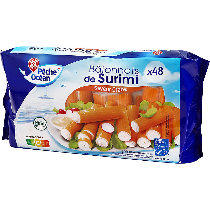 Bâtonnets de surimi de chair de poisson, saveur crabe PECHE OCEAN