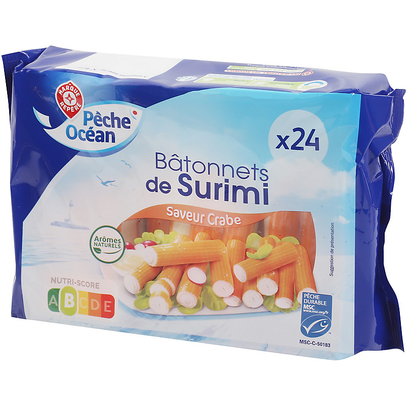 Bâtonnets de surimi de chair de poisson, saveur crabe PECHE OCEAN
