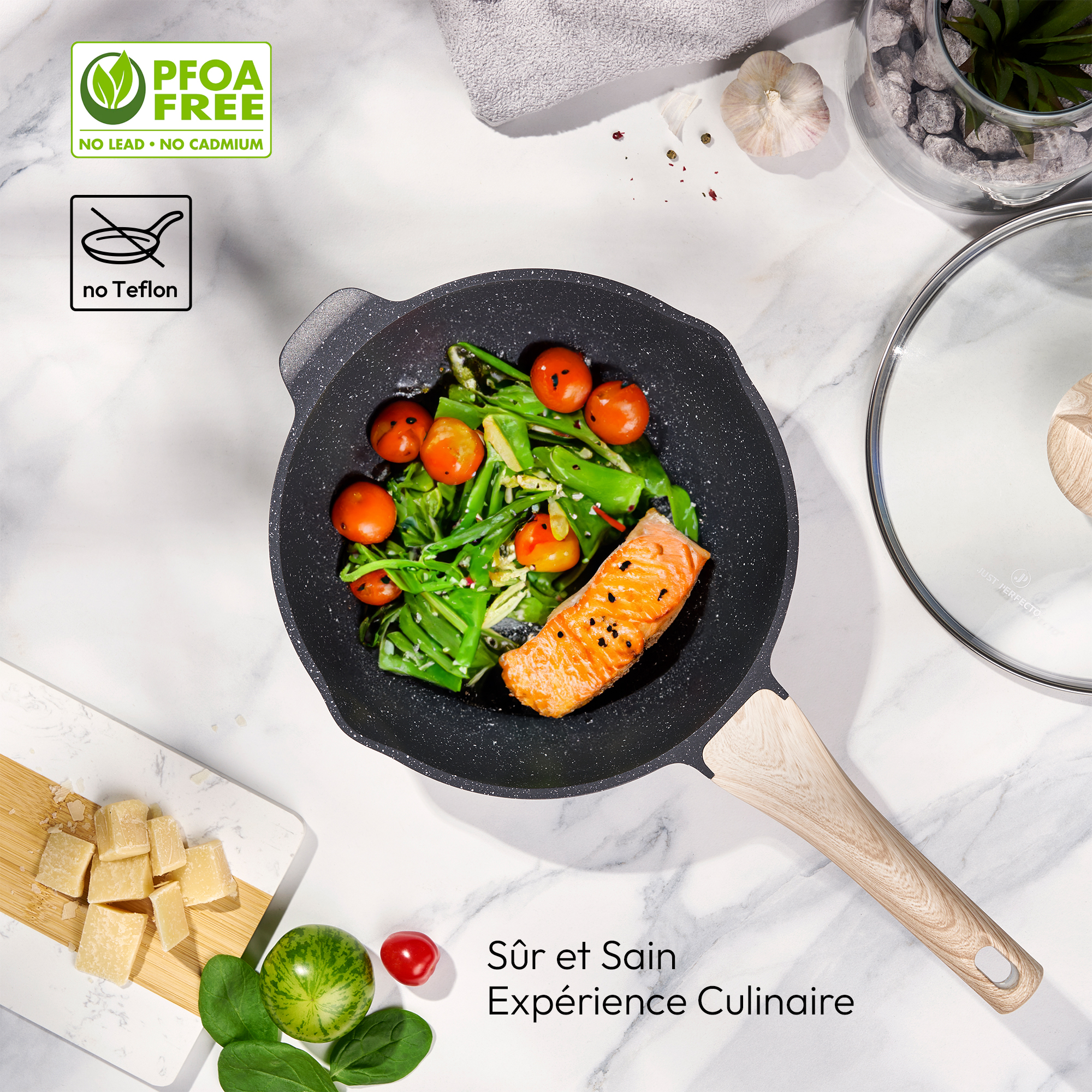 La sécurité d'abord: Sans produits chimiques nocifs comme le PFOA, le PTFE, le plomb, le cadmium et le téflon.