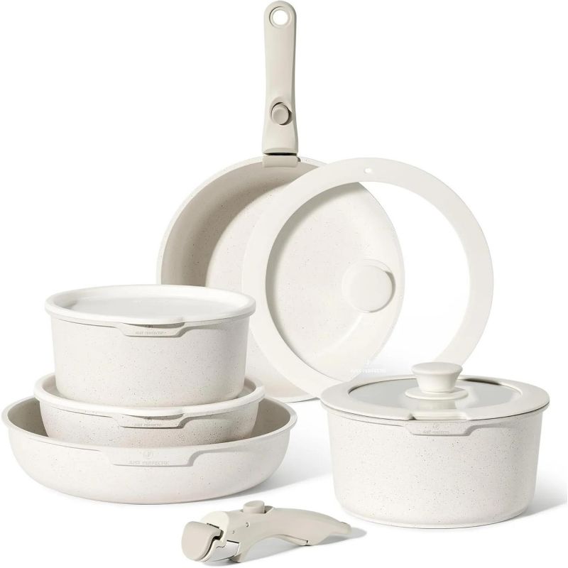 Batterie de cuisine 11 pièces avec poignées amovibles en Granit beige - Tous feux dont induction Just per