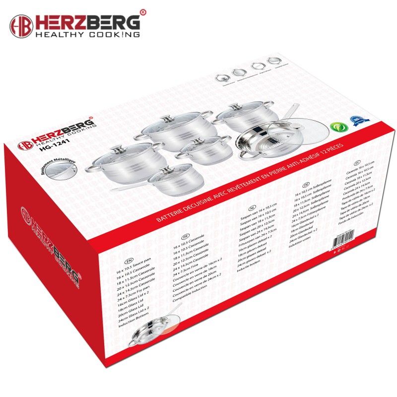 | Libellé | Batterie de Cuisine 12 Pièces en Acier Inoxydable Herzberg HG1241-IX |