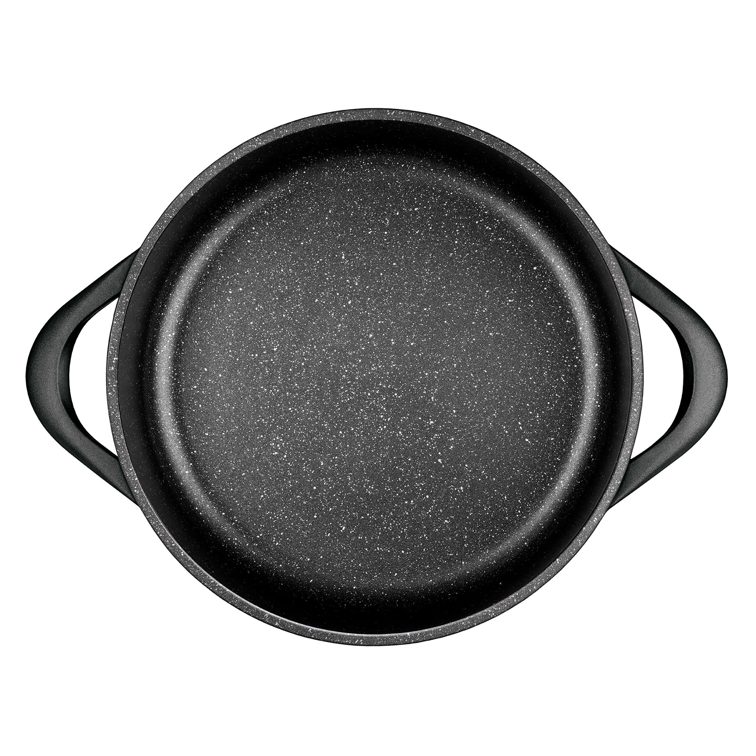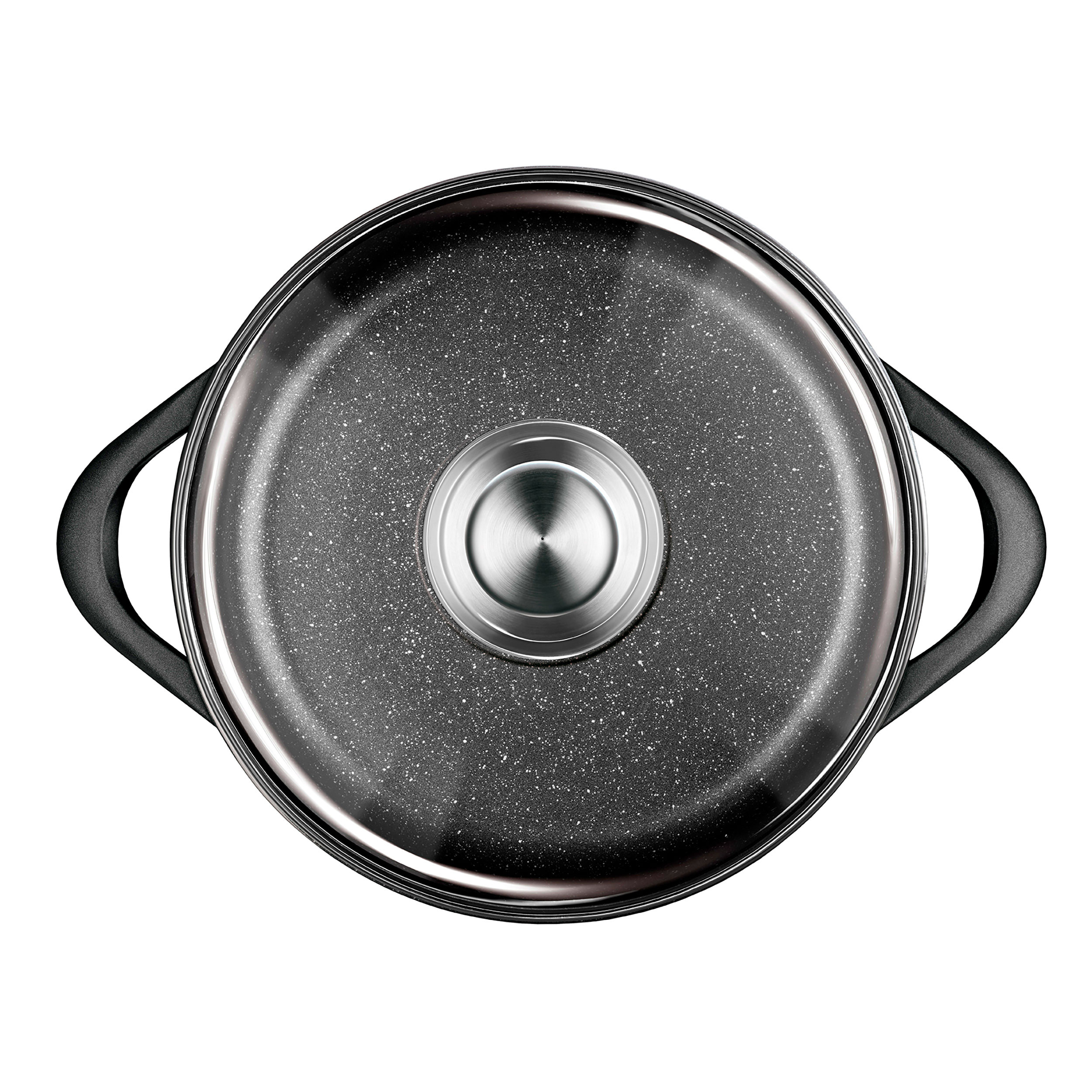 - 【ALUMINIUM FONTE】 Le corps et les poignées des pots sont fabriqués en aluminium fonte de haute qualité revêtu d'un revêtement anti-adhésif ILAG. L'épais fond multicouche répartit la chaleur de manière uniforme pour une cuisson optimale.