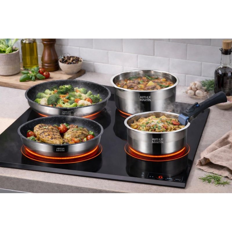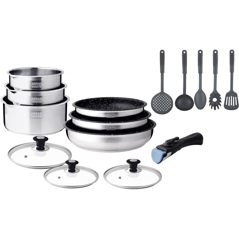 | Libellé | Batterie de cuisine inox avec manche amovible 15 pieces Arthur Martin AM1275 |