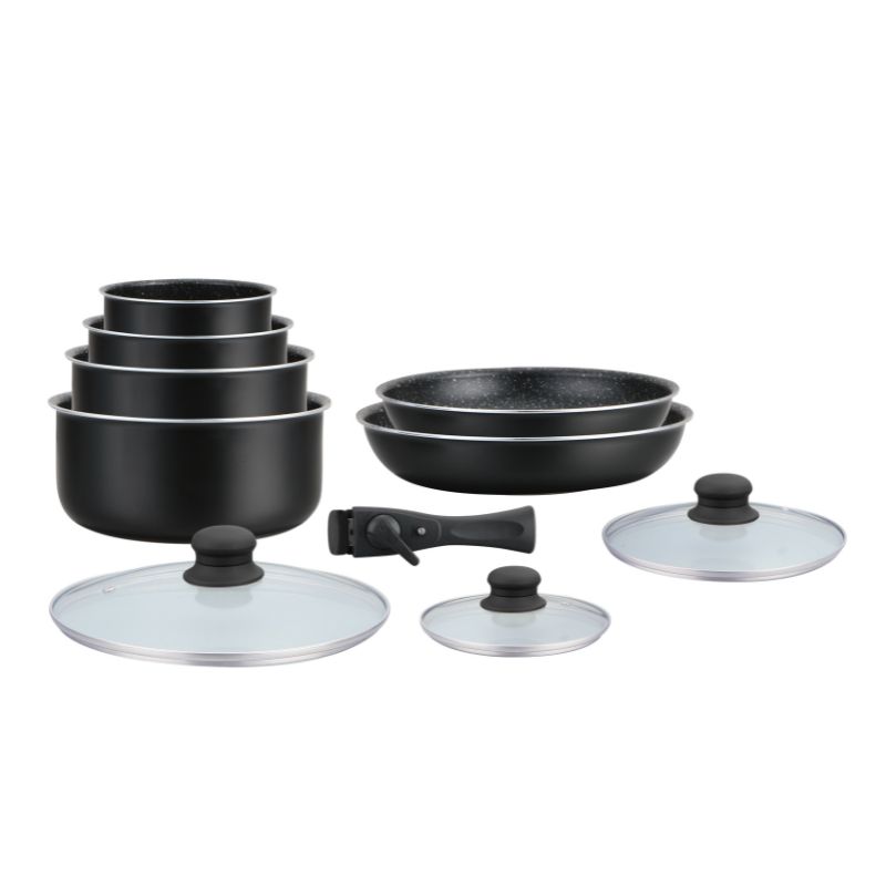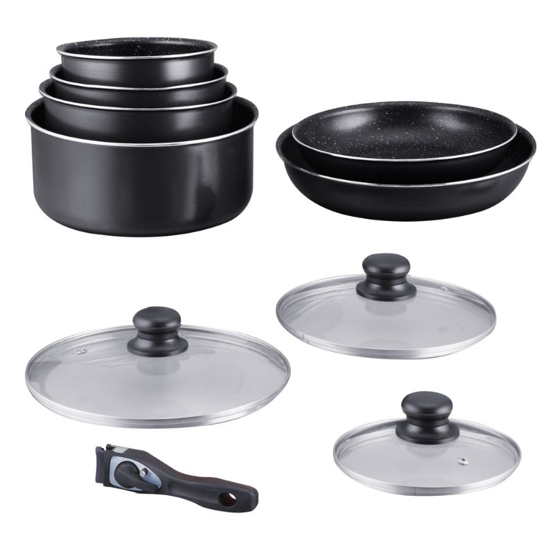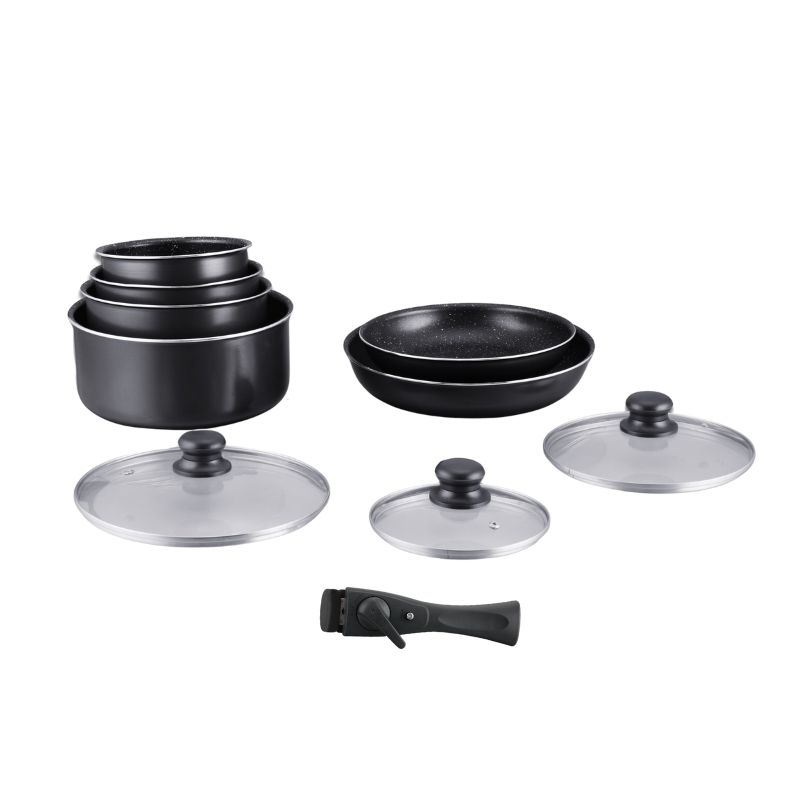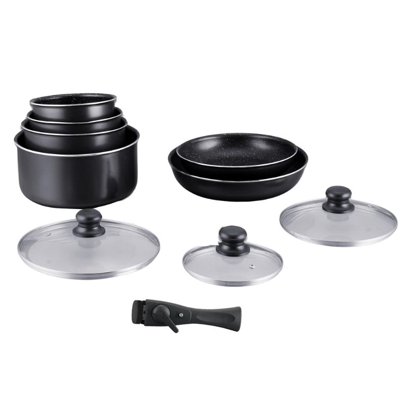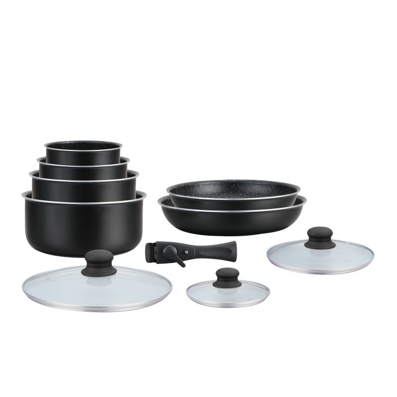 Batterie de cuisine revêtement pierre avec manche amovible 10 pieces noir Hagen HA04630-BLK