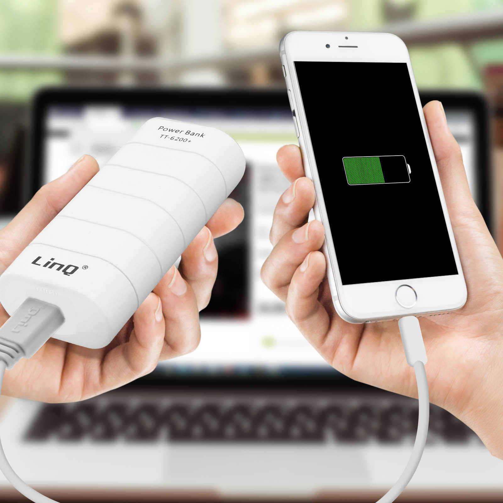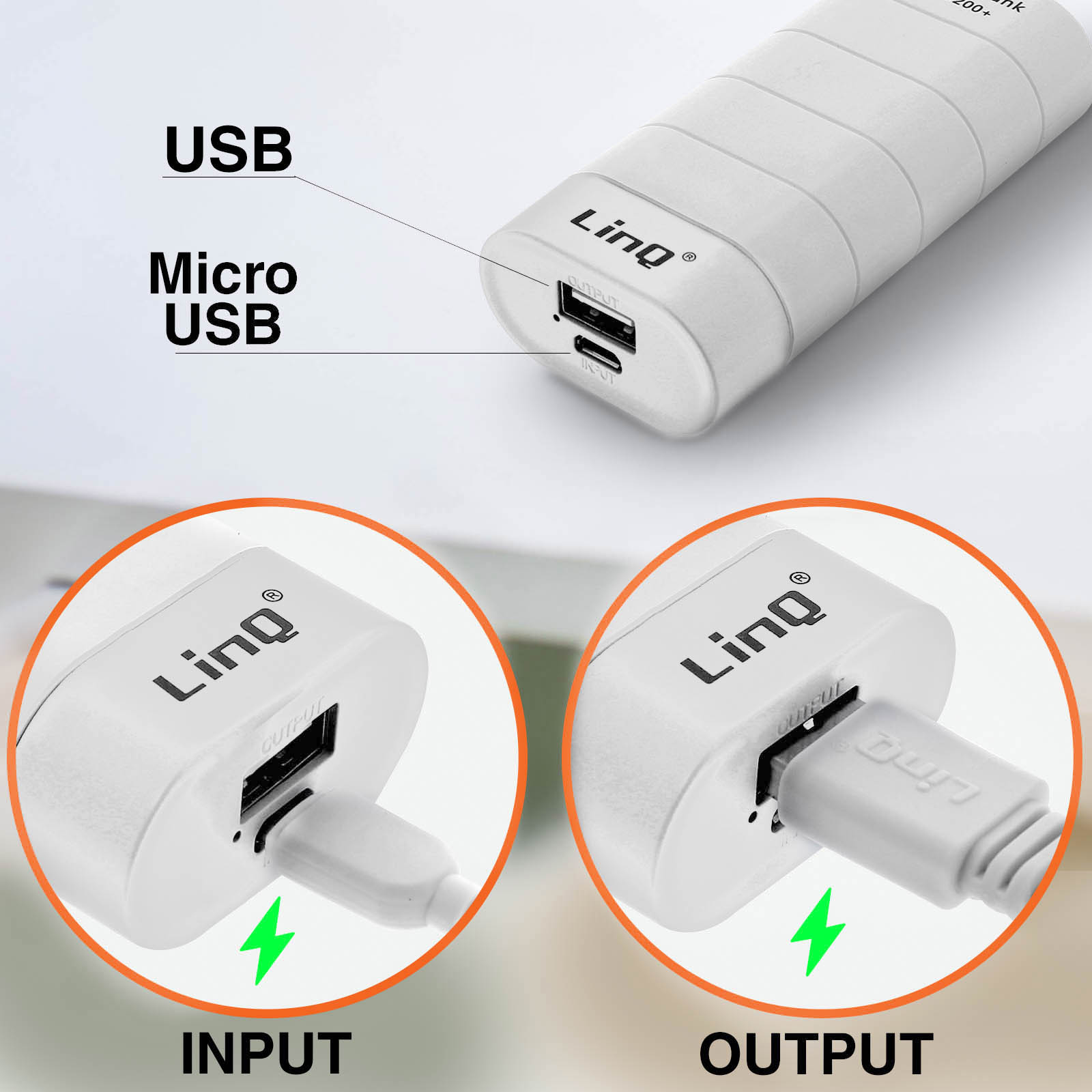 Batterie de secours Universel Chargeur Externe USB 1A 6000mAh LinQ - Blanc