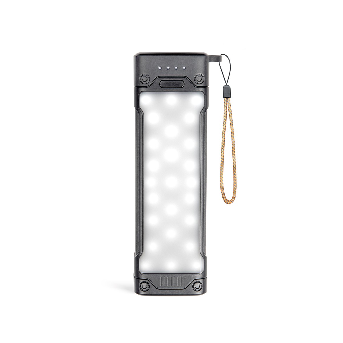 | Plus produit | Capacité 20 000 mAh, 3 ports (1 USB‑C + 2 USB‑A), charge rapide 20 W, torche 25 LED (3 intensités + SOS), indicateur 4 LED, mousqueton et dragonne |