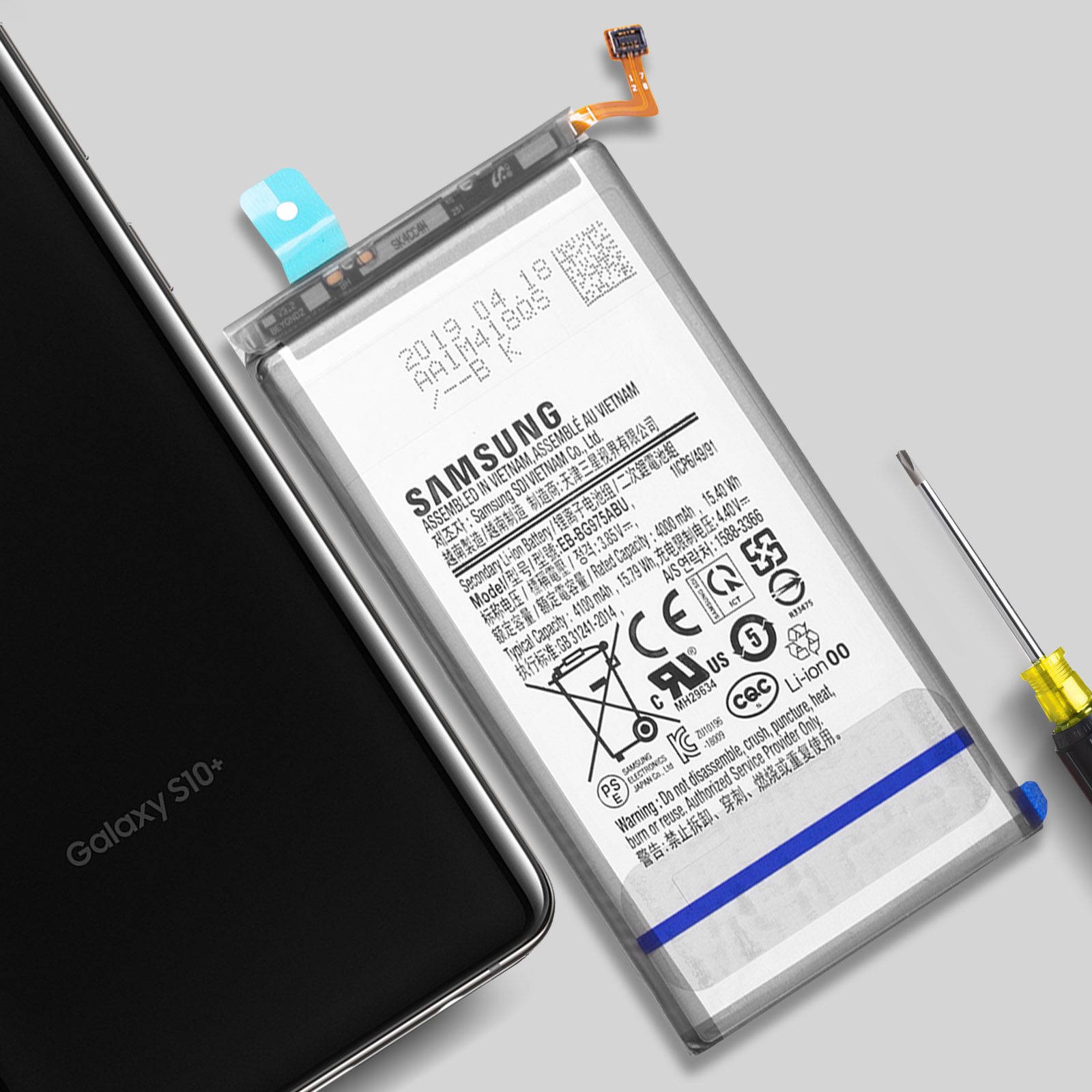 Une batterie d'Origine pour le Samsung Galaxy S10 Plus modèle EB-BG975ABU. Capacité de 4100mAh. Idéale pour donner une seconde vie a votre mobile lorsque sa batterie montre des signes de faiblesses.