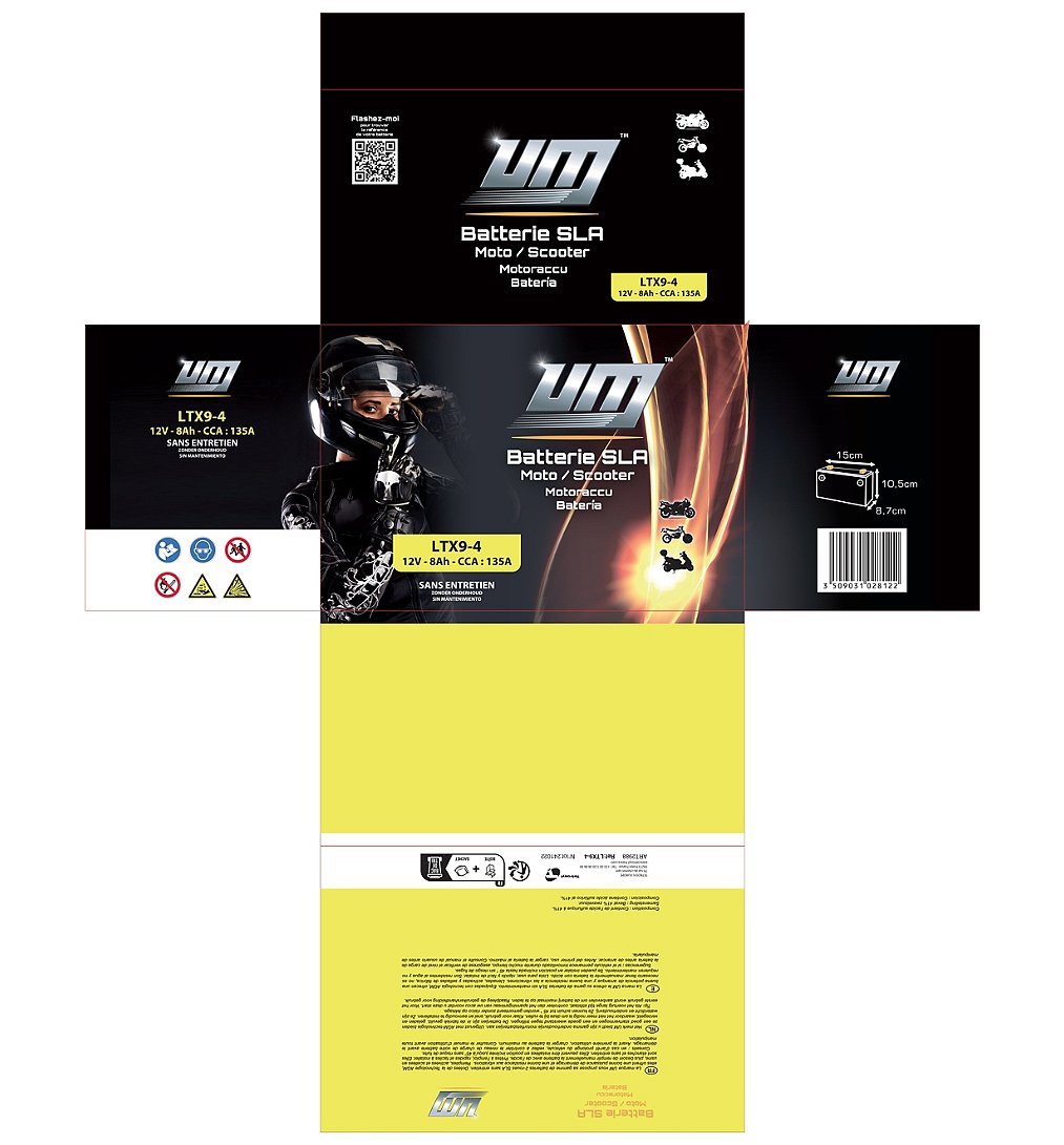 La marque UM vous propose sa gamme de batteries 2-roues SLA sans entretien. Dotées de la Technologie AGM, elles offrent une bonne puissance de démarrage et une bonne résistance aux vibrations. Remplies, activées et scellées en usine, plus besoin de remplir manuellement la batterie avec de l’acide. Prêtes à l’emploi, rapides et faciles à installer. Elles sont étanches et sans entretien. Elles peuvent être installées en position inclinée jusqu’à 45° sans risque de fuite.