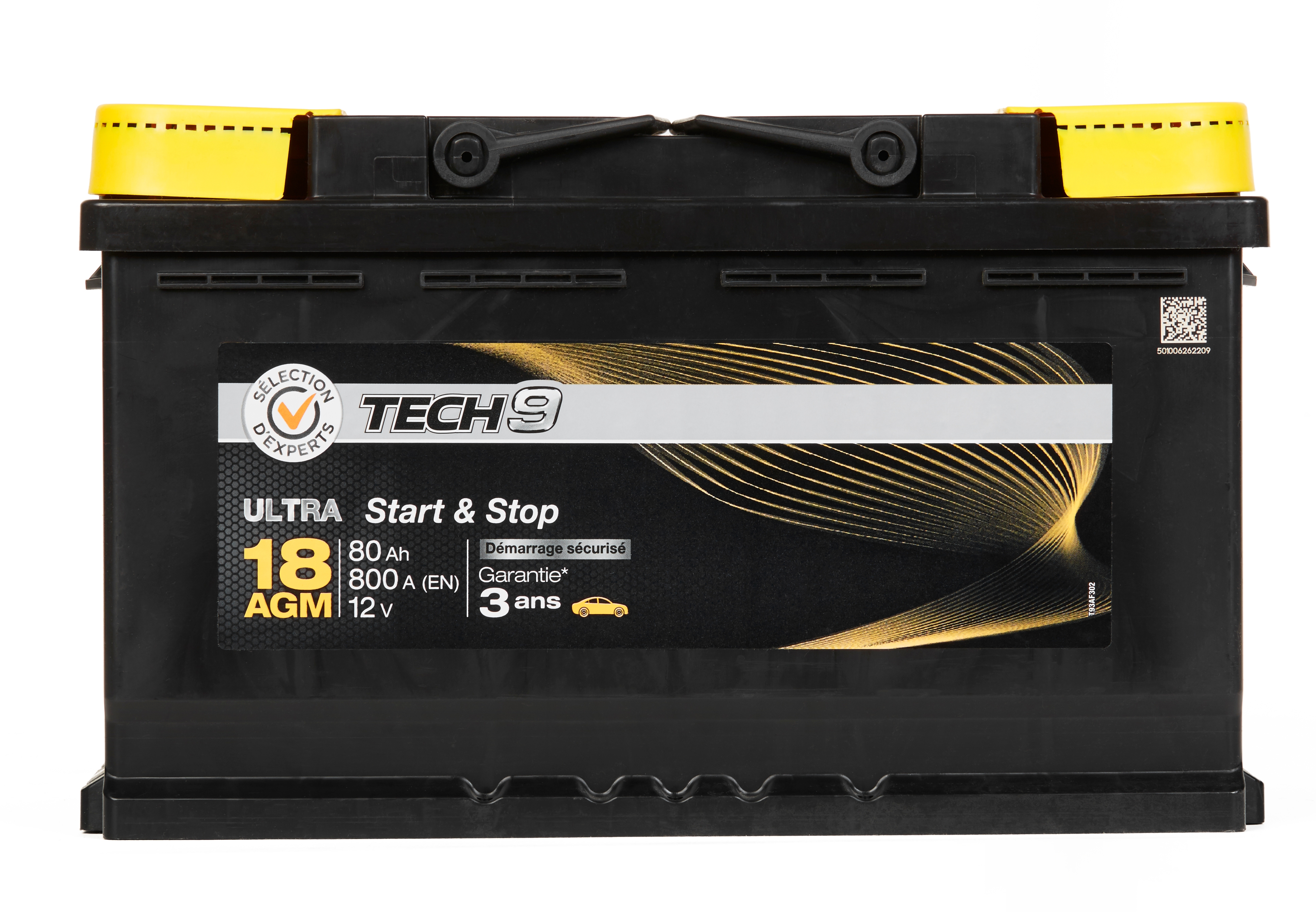 Batterie sans entretien TECH9 - numero 18 - L04 - 80ah - 800A - Stop and start AGM - Garantie 3 ans