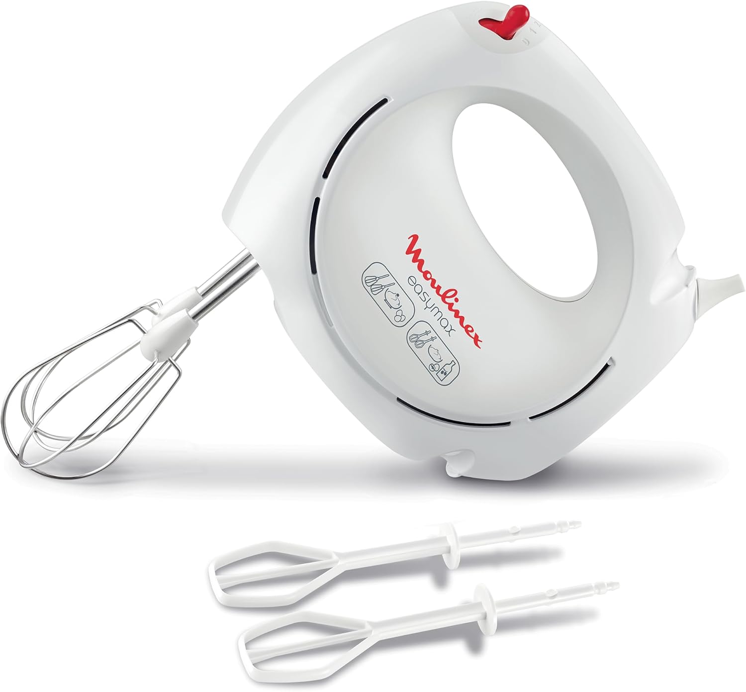 Batteur électrique compact et polyvalent avec moteur de 200 W et 5 vitesses pour battre, mélanger et fouetter rapidement toutes vos préparations. Équipé de deux jeux de fouets, en plastique et inox, il permet de réaliser pâtes à gâteaux, blancs en neige, crèmes fouettées et mayonnaises avec efficacité. Son design ergonomique assure une prise en main confortable et son format compact facilite le rangement dans la cuisine. Simple à utiliser grâce à un bouton de commande unique, il combine performance, praticité et confort. Réparable pendant 15 ans grâce à un réseau mondial de réparateurs agréés, pour un produit durable et respectueux de l’environnement.