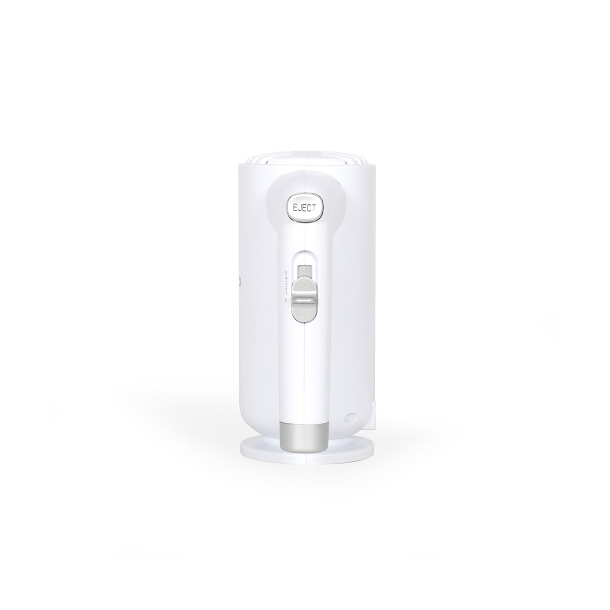 Le bouton d'éjection des fouets rend le processus encore plus simple. Plus besoin de manipuler les fouets avec les mains, tout se fait d'un simple geste. Sa forme ergonomique permet de le poser facilement sur le comptoir sans risque de basculement.