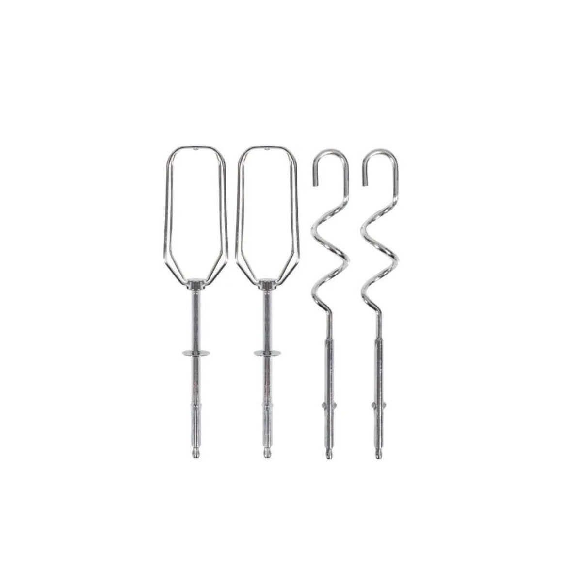 Les accessoires inclus, 2 batteurs et 2 pétrisseurs. Tu peux tout mélanger, fouetter, et pétrir avec facilité.
