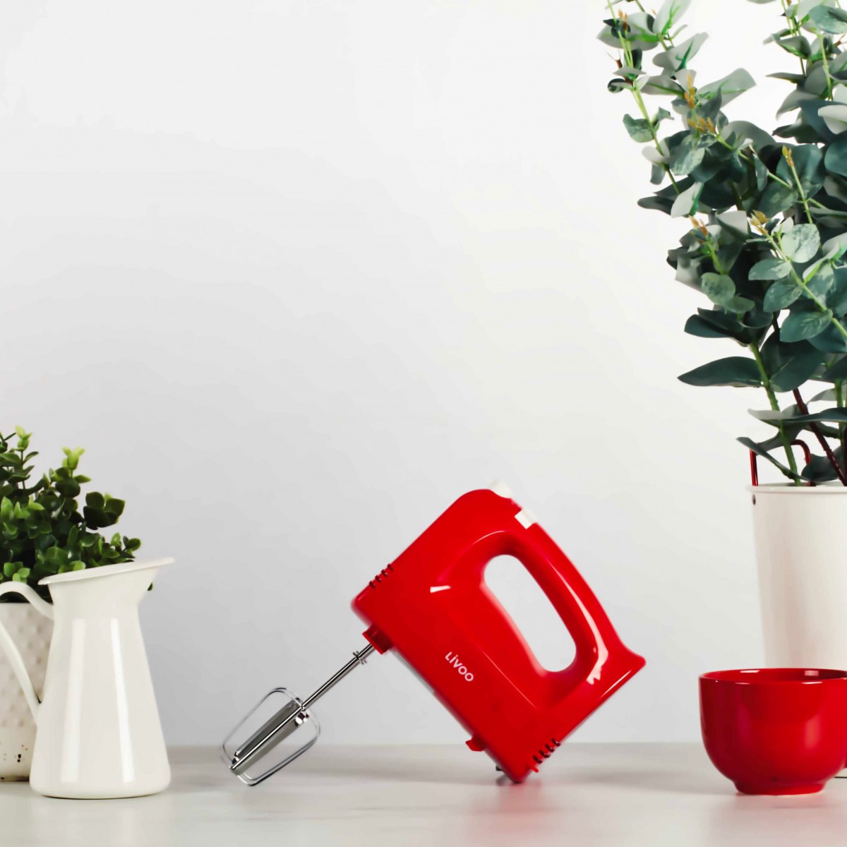 Puissance 200 W. 5 vitesses. 2 batteurs et 2 pétrisseurs inclus. Bouton d'éjection des fouets