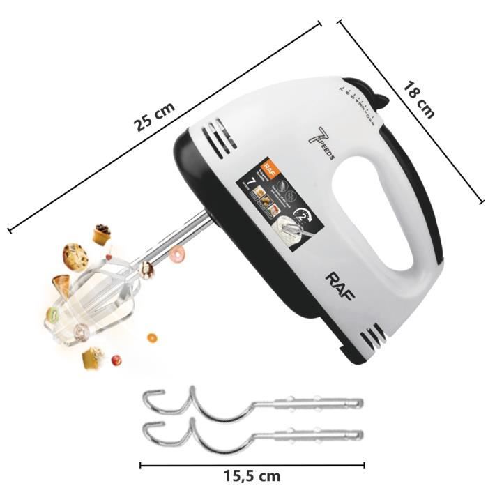 | Libellé | Batteurs à Main 260W, Batteur Electrique avec 2 Fouets Hélice, 7 Vitesses, Ergonomique, Puissant - Blanc |